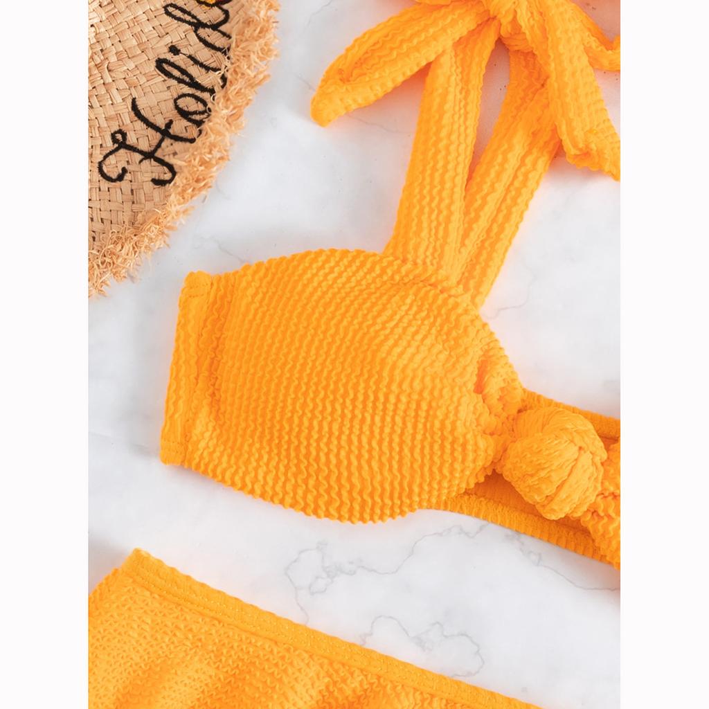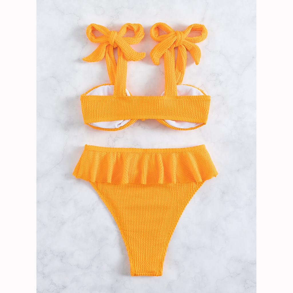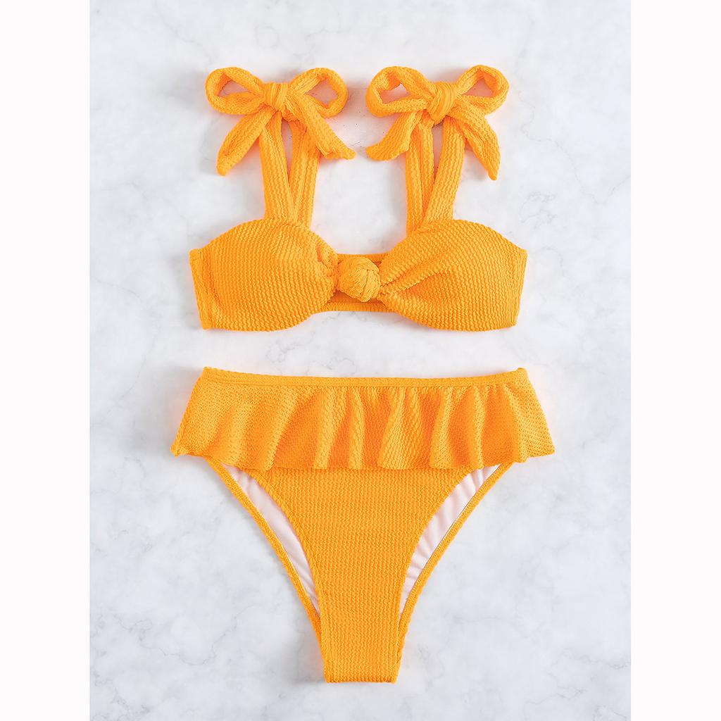 Сексуальный женский купальник с рюшами в рубчик, однотонный женский купальник, бразильский комплект бикини, бандо, пляжные купальные костюмы
