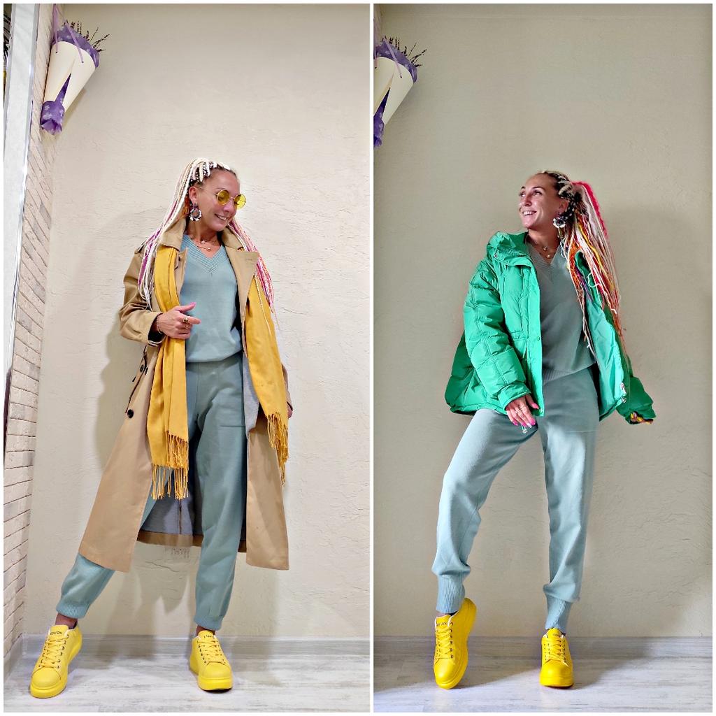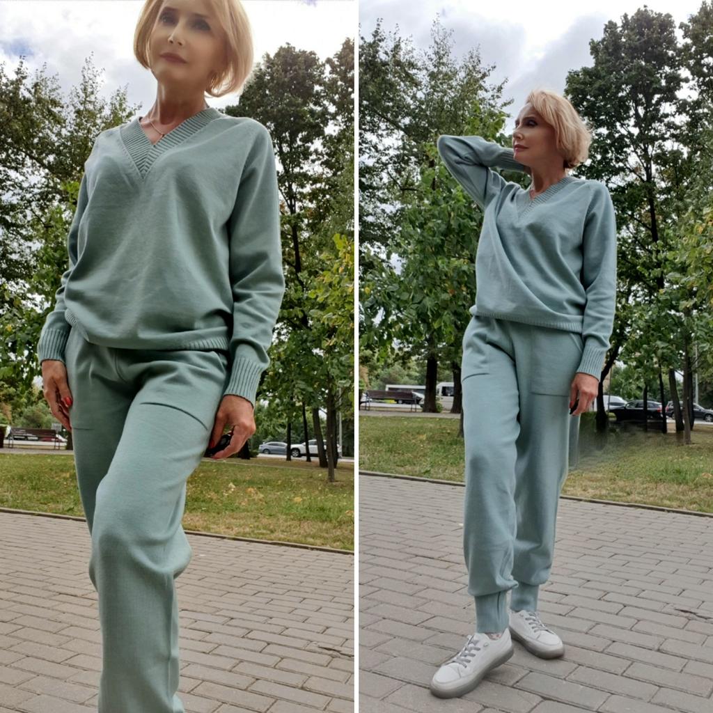 Трикотажный костюм мятного цвета 🌿😍🌿 Всем солнечный приветик 👋😉 Девчонки, Вы попросили побыстрее сделать обзор на этот костюм, я с задержкой, простите за это, мои роднулечки, но всё же спешу рассказать о нём 🤗 Классный, очень им довольна и уже впрыгнула в него и ношу 😍 Он подойдёт на сезоны: прохладное лето, весна, осень, а если пододеть термо бельё, то можно и на нехолодную зиму под танкер или пальто 💚 Костюм идёт в едином размере. Прекрасно сядет как на 42 размер, так и на 48, а, возможно и на 50. Смотрите все точные замеры костюма ниже. На мне сел костюм свободно, в том числе и по длине ☺️ Мои параметры: 🎗рост 160см 🎗вес 55кг 🎗длина плеч 40см 🎗объём груди 94см (75D) 🎗объём талии 63см 🎗объём бёдер 92см. Качество: 🌿 трикотаж средней плотности 🌿 ткань приятная к телу 🌿 тянется отлично 🌿 не просвечивает 🌿 V-образный ворот 🌿 брюки с завышенной талией на широкой резинке + завязки 🌿 на манжетах и низ штанов на заужение, по типу резинки 🌿 спереди на штанах два глубоких кармана 🌿 швы ровные 🌿 фабричное качество. Точные замеры комплекта: кардиган: 📏 ОГ - 104 - 170см 📏 ОТ - 100 - 162см 📏 объём низа свитера - 86 - 162см 📏 длина свитера от плеча - 64см 📏 длина плеч - их нет 📏 длина рукава от воротника - 63см 📏 объём рукава у плеча - 38 - 70см 📏 объём манжеты - 14 - 36см брюки: 📏 ОТ - 62 - 106см 📏 ОБ - 100 - 162см 📏 длина брюк - 99,5см 📏 длина штанины по внутреннему шву - 74см 📏 объём штанинин в широком месте - 60 - 102см 📏 объём штанинин снизу - 22 - 60см. Я очень-очень довольна покупкой и рекомендую комплект всеми ручками 💞🤗💞 Спасибо, продавцу и Джуму 😘😘😘 Чмок-чмок-чмок, всех кто со мной на Джуме 53 тысячи раз 😘😘😘😘😘 Желаю удачных покупок 🛍😊 терпения 🤗 и весны в душе 🌈☀️🌱🦋🌼💕🐞🌳🕊 До скорого 🙌😊 Песня во втором видео: About That feat. Evaline "Who Let The Dogs Out" 🎶💃🎶