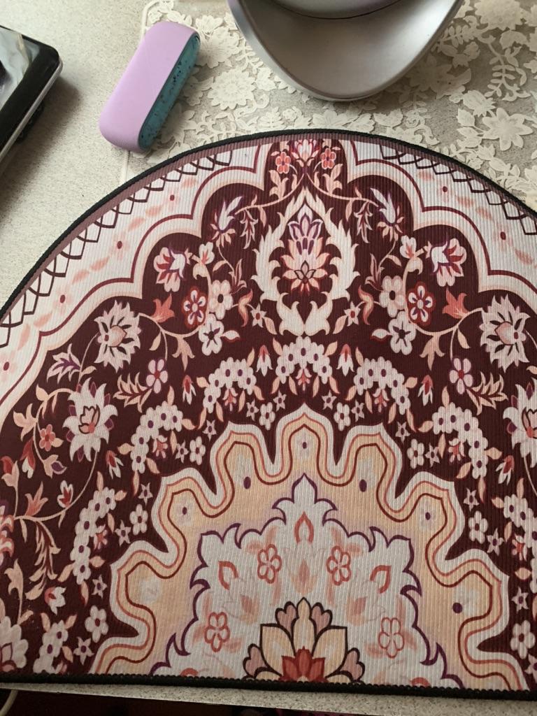 Противоскользящий😆Да, на нём можно разряд по фигурному катанию сдать. Да ещё свернули так, неделю не расправился. Размер маленький. Цвет как будто выгорел... , надоело писать - просто не советую.