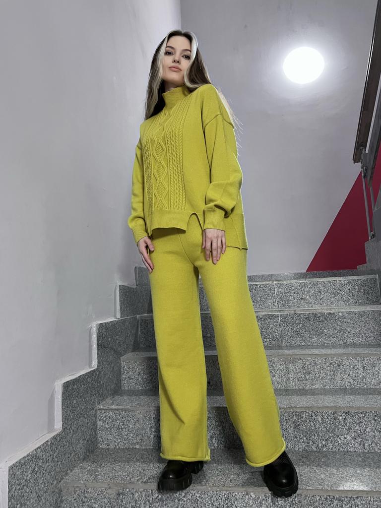 Цвет понравился, но на параметры: рост 162 см, 103/86/103 не понравилось как сел, маловат и по длине и по ширине. Штаны не красиво обтянули проблемные ноги, а свитер этот нюанс не прикрыл, коротковат. Замеры рукавов на 10см меньше, указанных продавцом. Плечи по факту тоже на 3 см меньше от размерной сетки. Костюм рассчитан или на миниатюрную девушку или на ребенка, свою стоимость по качеству не оправдывает.