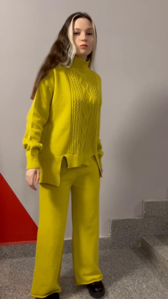 Жёлто-зелёный трикотажный костюм 💛💚 Всем солнечный приветик 👋😉 Яркий и тёплый костюм ☺️ Идёт в едином размере. На мне сел очень свободно 😊 Точные замеры костюма смотрите ниже. Мои параметры: 🎗рост 160см 🎗вес 57кг 🎗длина плеч 40см 🎗объём груди 94см (75D) 🎗объём талии 65см 🎗объём бёдер 94см. Качество: 💛 пушистый акрил 💚 ткань мягкая и приятная к телу 💛 тянется отлично 💚 не просвечивает 💛 ассиметричный свитер спереди короче сзади длиннее 💚 спереди свитера есть 2 разреза 💛 спереди свитера геометрическая вязка 💚 на воротнике, манжетах и низ свитера по типу резинки 💛 штанинины широкие 💚 завышенная талия с широкой резинкой 💛 швы ровные. Точные замеры костюма: свитер: 📏 ОГ - 114 - 220см 📏 объём низа свитера - 114 - 220см 📏 длина свитера от плеча спереди - 55см, сзади - 61см 📏 длина плеч - 56см 📏 длина рукава от воротника - 68см 📏 объём рукава у плечевого шва - 36 - 60см 📏 объём манжеты - 18 - 52см. штаны: 📏 ОТ - 68 - 130см 📏 ОБ - 102 - 190см 📏 длина штанов - 103см 📏 длина штанины по внутреннему шву - 73см 📏 объём штанинины - 60 - 138см. Я костюмом довольна очень-очень и буду его рекомендовать всеми ручками 💞🤗💞 Спасибо, продавцу и Джуму 😘😘😘 Чмок-чмок-чмок, всех кто со мной на Джуме 56 тысяч раз 😘😘😘😘😘 Желаю удачных покупок 🛍😊 терпения 🤗 и весны в душе 🌈☀️🌱🦋🌼💕🐞🌳🕊 До скорого 🙌😊 Песня во втором видео: Flaying Decibels "Hate The Way I Love You" 🎶💃🎶