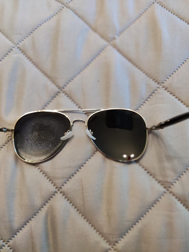 Одно стекло с другой стороны матовое. Я очень разочарована. Заказывала такие очки до этого пришли в футляре, были больше . Сейчас пришли совершенно другие очки. Хотелось бы получить возврат денег за бракованные очки.