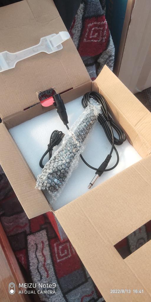 Колонка класс! радио играет ,флешку воспроизводит,небольшая ,собрано хорошо ,звук чёткий,громкая, кабель в комплекте ,аукс работает . Микрофоны тоже работают, соседей уже "шокировала"! Комплект на фото