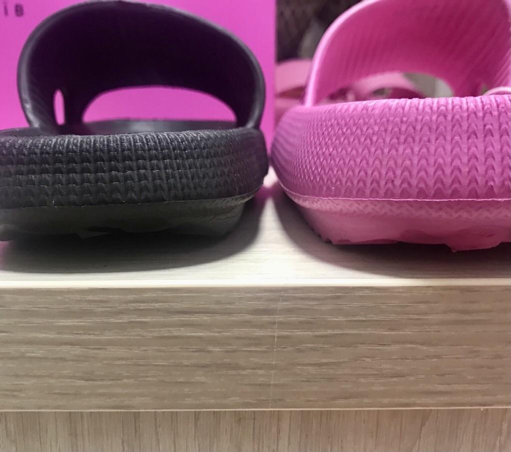 Ужасные тапки. У меня такие же тапки другого продавца , но подошва гораздо шире, это видно на фото. Эти не понравились ещё и не подошли по размеру. Цена была со скидкой , но даже со скидкой это как дешевая подделка - Хотя смешно звучит . Продавца не рекомендую - для того , чтобы продавать, необходимо указывать все параметры , в том числе и толщину подошвы. Очень обидно , валяются без дела, гадость редкая ! .