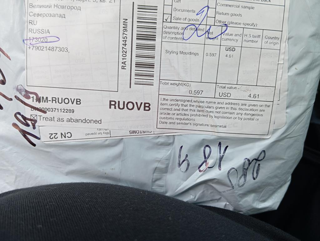 Спасибо за посылку. Получил,все нормально. Приклеил.Хватило ровно на на одну машину.Сколько продержится....посмотрим!!! Пока доволен,эстетически стало лучше смотреться(Дачия лоджи)