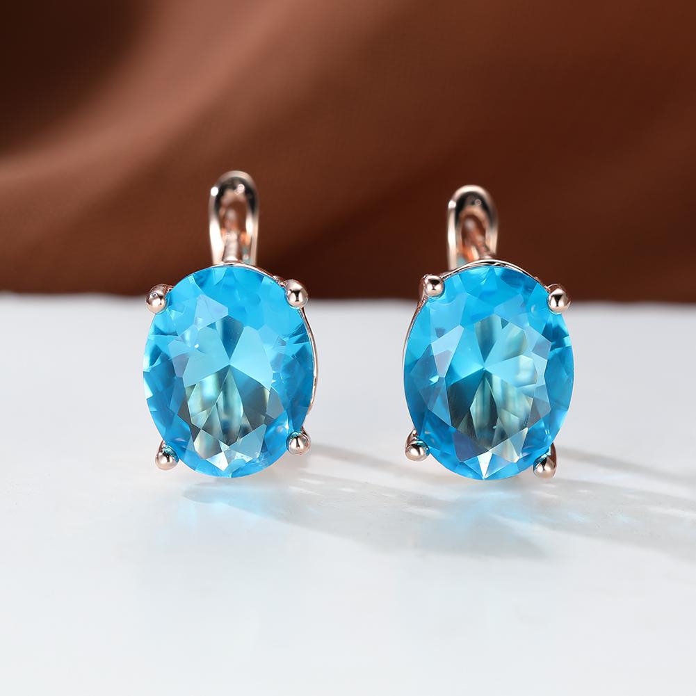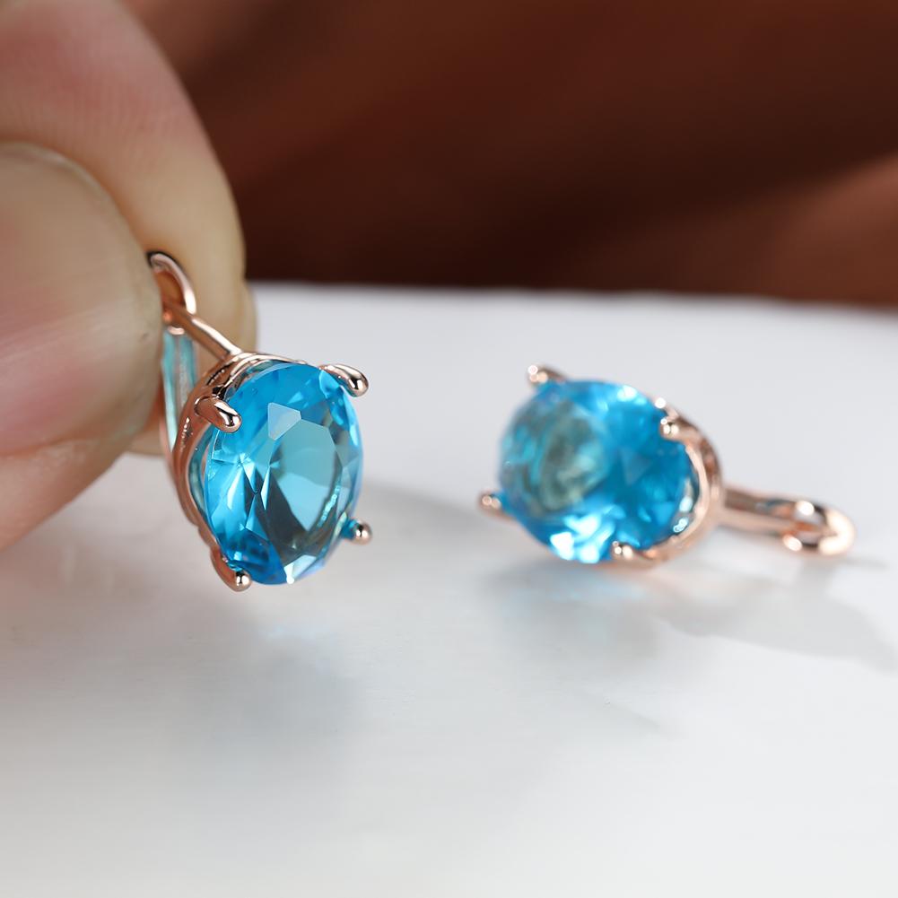 Серьги-капли розового золота цвета морской волны с синим камнем для женщин, леди и девочек, помолвочные, свадебные, модные, ювелирные изделия с овальным камнем, подарок