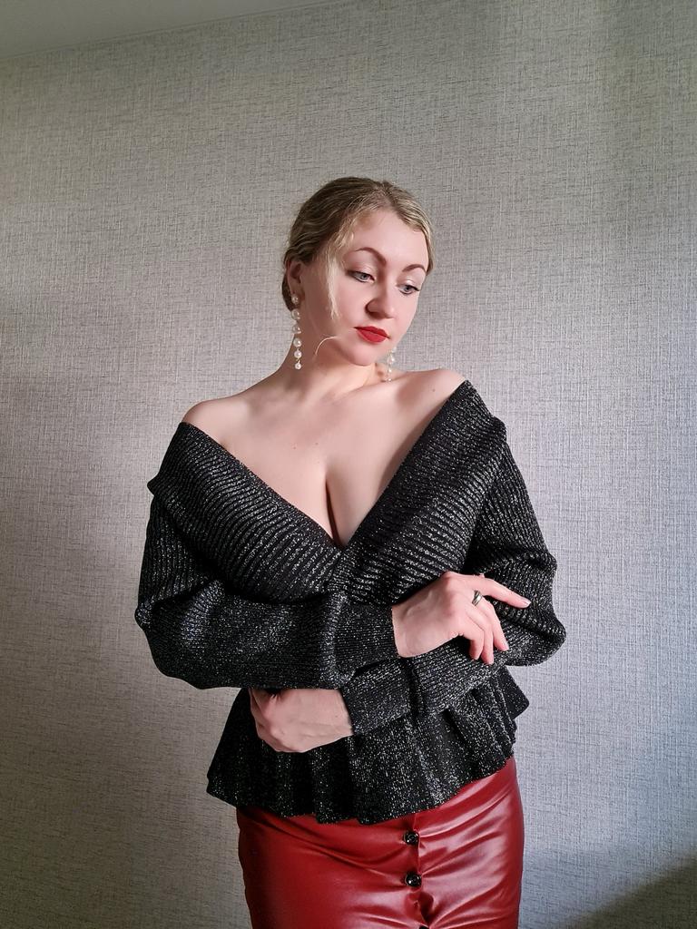 Спасибо за доставку! До Омска доставка чуть больше месяца. Кофточка пришла в сборной посылке, что очень удобно. Это просто вау, очень красивая модель . Рост мой 154 см, и вес небольшой 57 кг., мой размер 48-50 российская, почему об этом пишу, потому что на мои параметры села просто идеально, как будто с меня мерки снимали. Модель стройнит, и если дамы в комментариях на видео жаловались, что в декольте дискомфорт и баска вверх задирается, у меня всё сидит идеально. К покупке однозначно рекомендую.