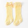 Летние носки для маленьких девочек, милые большие банты, мягкие хлопковые эластичные однотонные сетчатые носки для новорожденных, длинные носки до колена для маленьких девочек