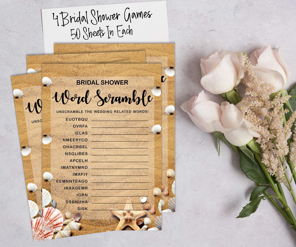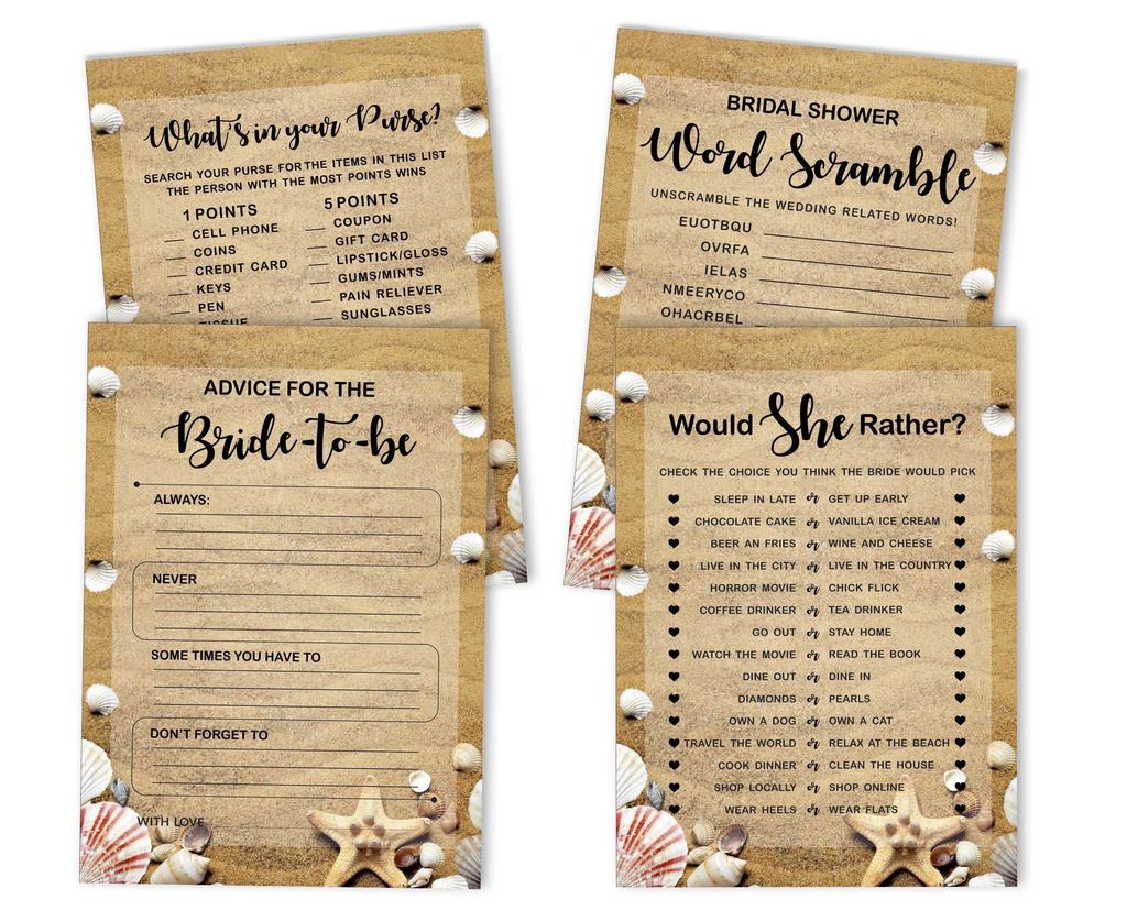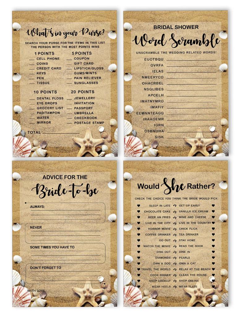 Inkdotpot Набор игр для девичника, комплект из 4 штук(50 листов каждый) w От мисс до миссис Голд Баннер Пляжные веселые игры для свадебного душа