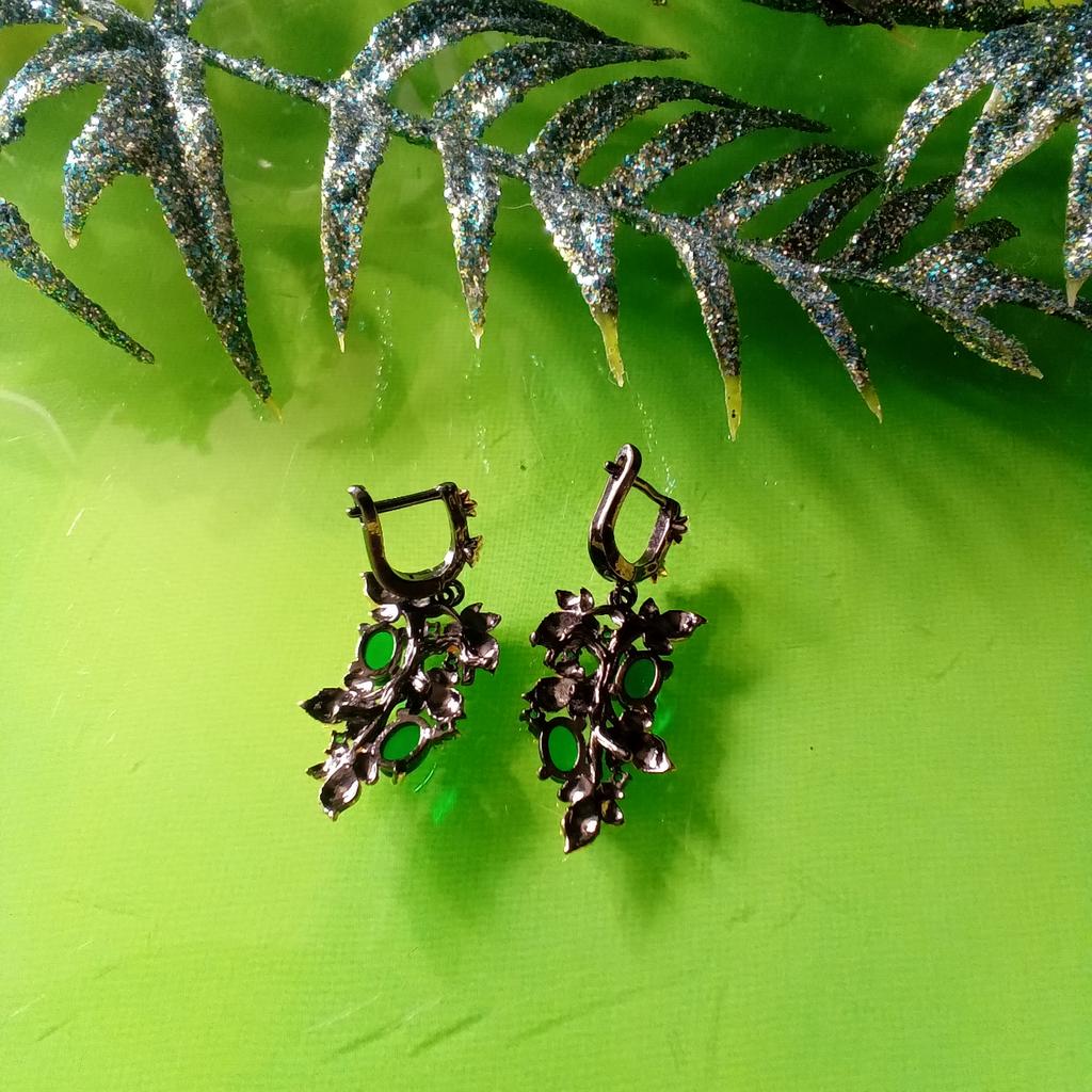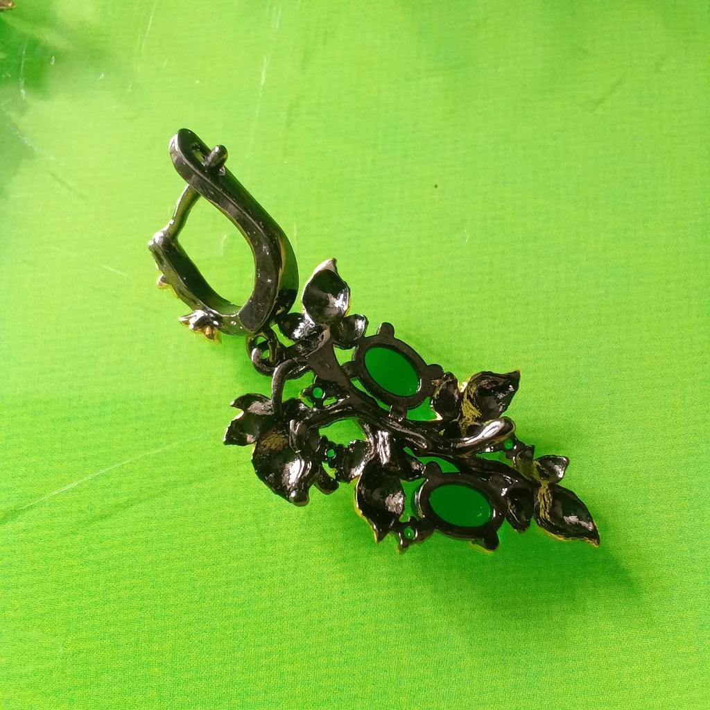 Шикарные серьги!👌 Лёгкие, изящные, красивые!👍 Материал:медь, искусственный циркон, покрытие под чёрное золото.👌 Небольшие, длина около 4 см,но эффектные.🤗 Камни светятся, переливаются. У меня с зелёными камушками.👍 Замок английский:удобный и практичный.👌 Хотя,он маленький.Боюсь,не на каждую мочку он подойдёт.🤔 Качество хорошее 👍💯: замок работает отлично 👍, камни все на месте, вклеены прочно. Рекомендую 🤗 к покупке.