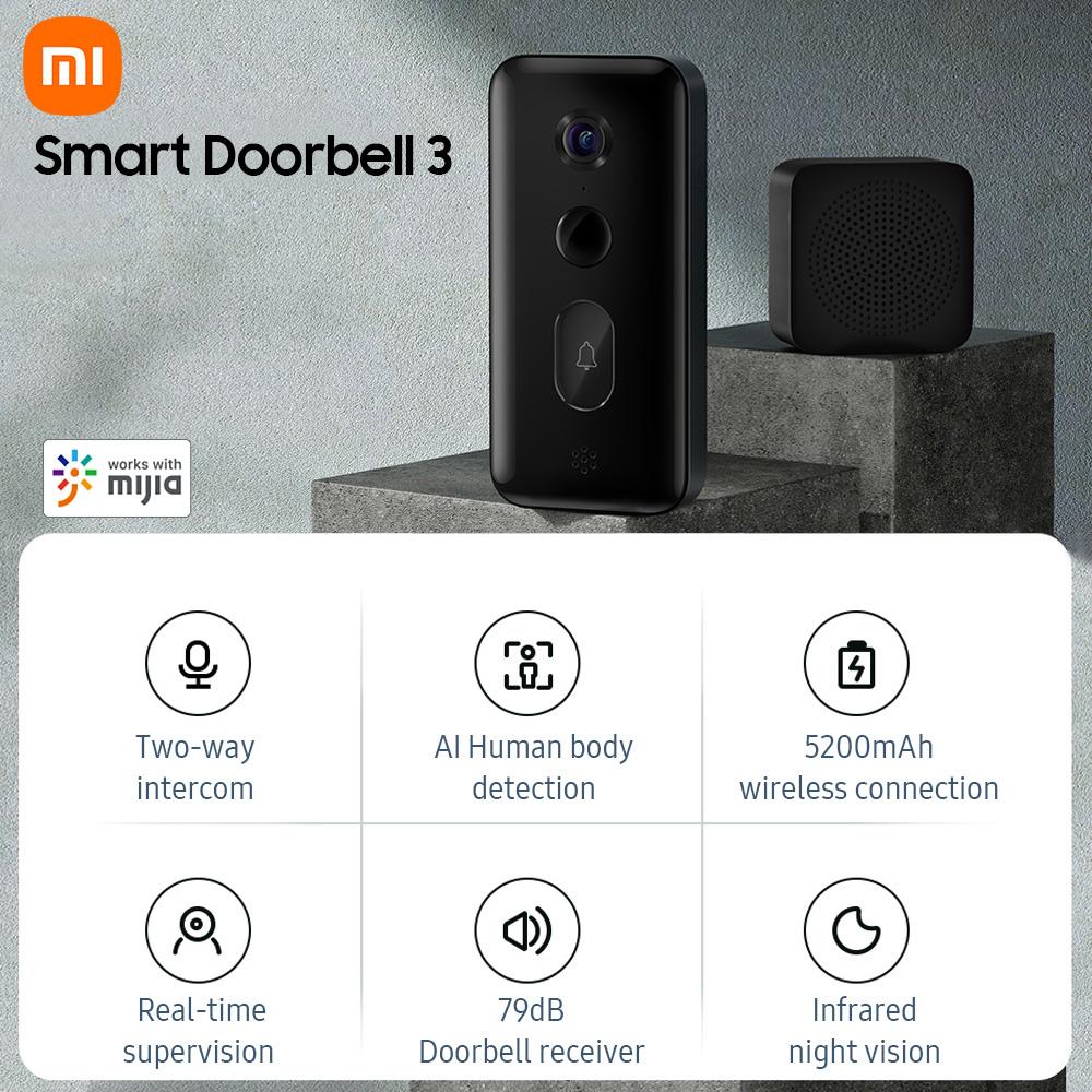 Xiaomi Smart Doorbell 3 Домашняя беспроводная камера безопасности 2K Ультра-четкое инфракрасное ночное видение 180°