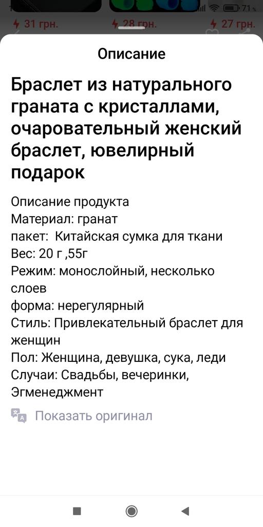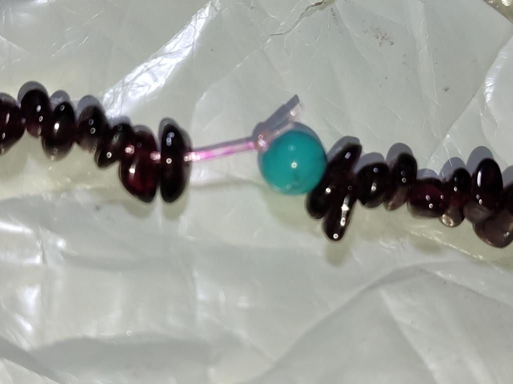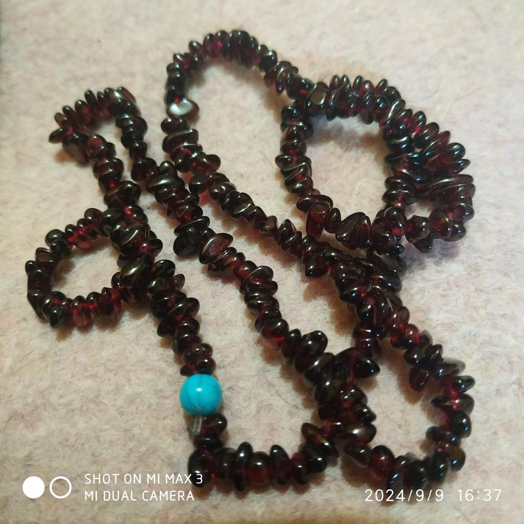 Бусины граната мелкие и длина так называемых бус на резинке 27см вдвое сложенных, в описании длина бус не указана, а указан вес 55 грамм, вес полученных бус 35гр. Вес не соответствует описанию продавца. Куплено со скидкой за 211гр, цена явно завышена. Обратилась в службу поддержки написали деньги вернут. И самое главное камень не настоящий , резинка на которой нанизан так называемый гранатовые бусинки крошки прокрасилась местами в розововишневый цвет. Разве камень натуральный может окрасить резинку?