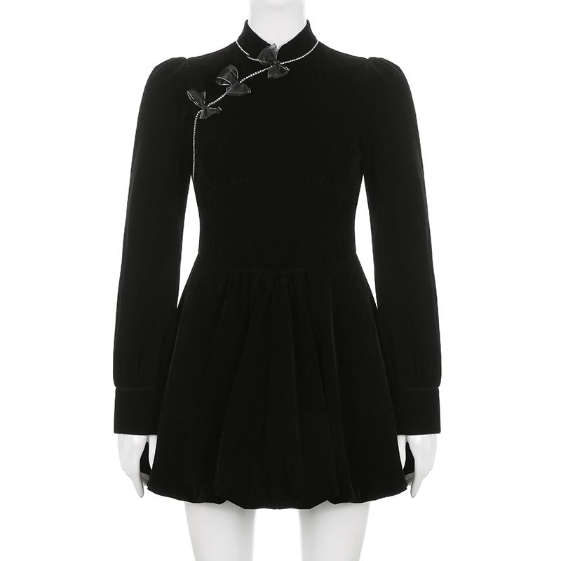 Cheongsam Darlingaga винтажное элегантное готическое велюровое черное платье с темным бантом осень-зима в китайском стиле плиссированные платья вечерние одежда с бриллиантами — купить товар онлайн с бесплатной доставкой по всему миру!