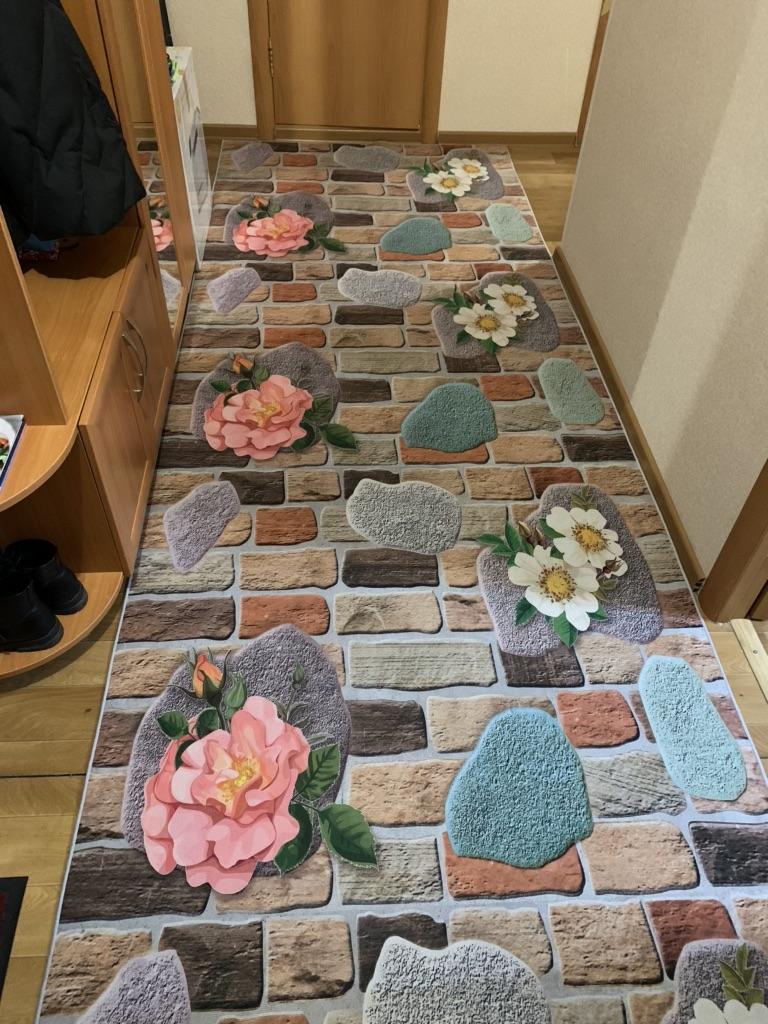 Получила дорожку в коридор, посылка пришла быстрее, чем ожидала! Чуть больше месяца шла! Размер 120 *400, соответствует заказанному размеру. Продавец очень хорошо упаковал дорожку, скручена в рулон! Без заломов, легла сразу! Очень красиво смотрится 3D рисунок!! Как будто объемное изображение, даже не ожидала… Я очень довольна! Рекомендую товар к покупке! Спасибо продавцу!!!!!