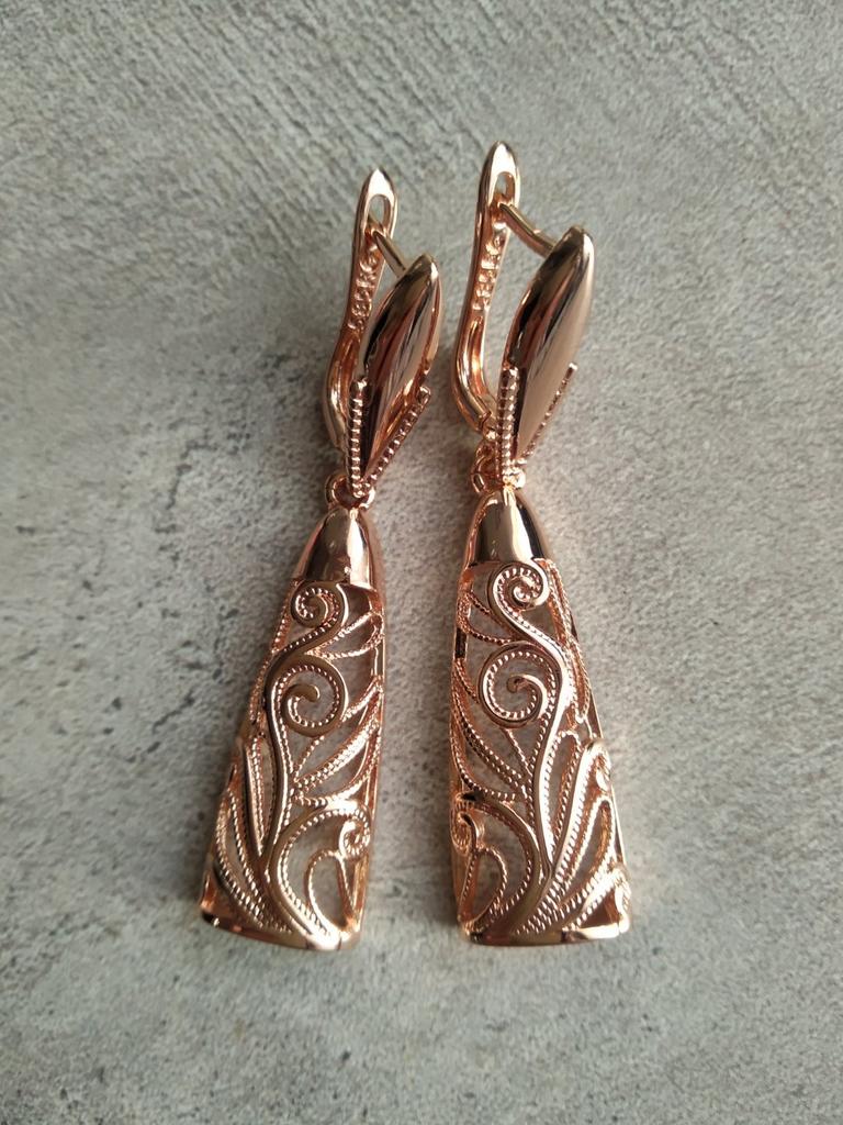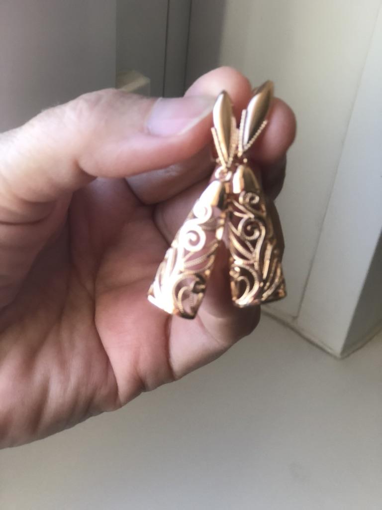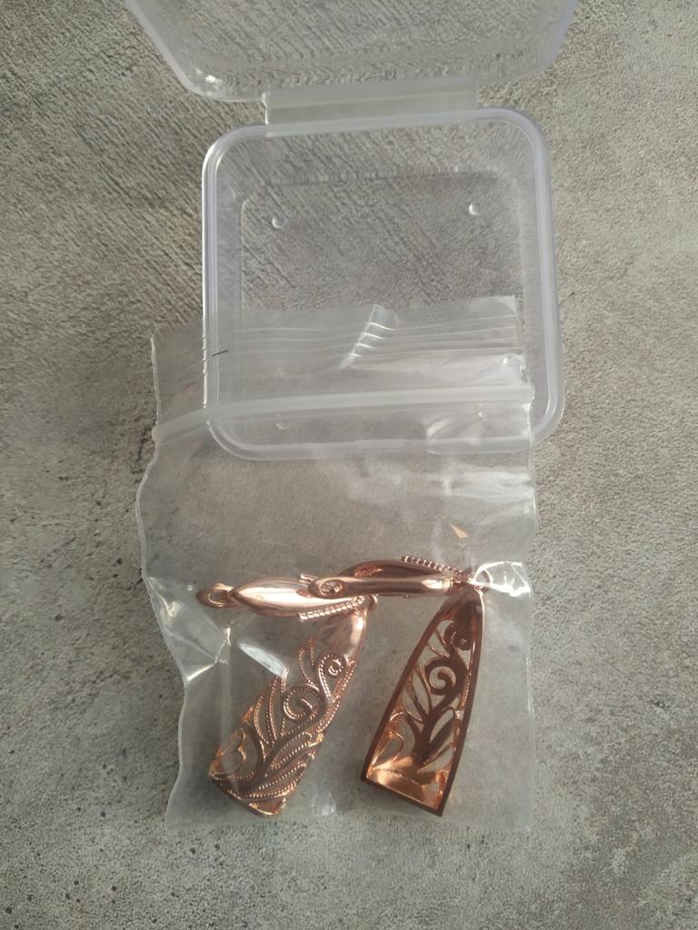 Получила свои сережечки очень красивые Мне показалось что на фото выглядят Поменьше размер а они давольно таки Крупнее Ну что сказать о качестве Кинель как всегда на высоте Ну очень уж оригинальные похоже на Розовое золото застёжки крепкие в общем Все замечательно Большое спасибо продавцу и доставке