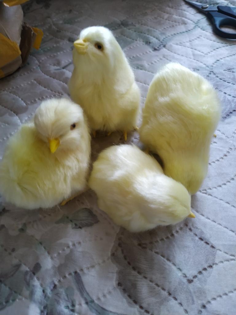 Получила цыплят. Достались они мне за1₽. Даже не ожидала, что они такие милые, совсем как настоящие! Мягкие, пушистые желтенькие комочки! Пригодятся на Пасху, для декорирования. Спасибо большое!