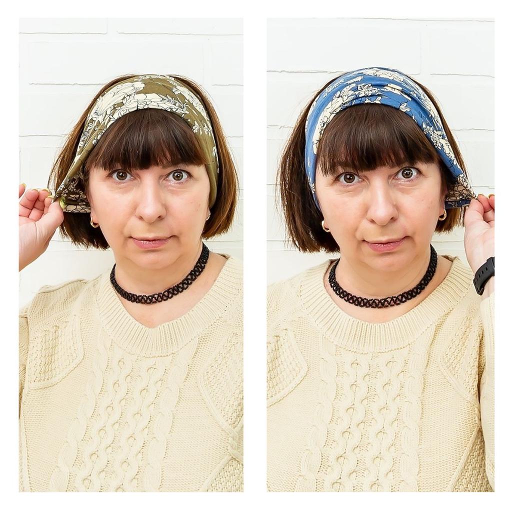 Повязка прикольная, в составе ткани есть эластичный синтетический трикотаж, который тянется, но скользит, и в течении дня рисунок перекручивается смешно ложится неравномерная окантовка . У меня норощенный волос, и когда я делаю высокий хвост, повязка идеально дополняет образ. Я бы сказала, что супер штука. Только рисунок приходится поправлять. Но я приловчилась фиксировать солнцезащитными очками, тогда край, то есть полоска одного цвета, красиво обрамляет лицо. И ещё, её можно подтягивать и малёк смещать, тогда цвет окантовки на лбу будет всегда разный, прикольно. Вообщем рекомендую всем красоткам.