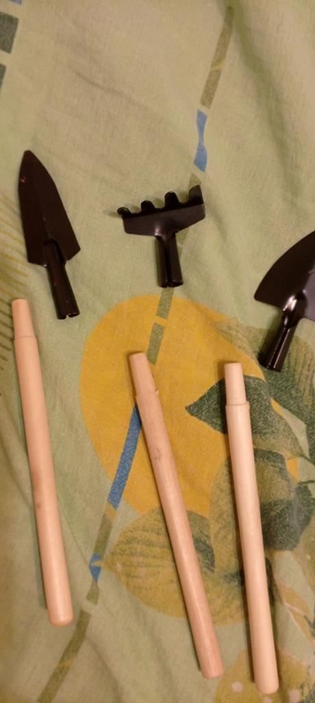 Получила садовой набор для дома. Задумка хорошая. Удобно дома иметь под рукой такой набор. Но сделан совершенно безалаберно. На 2-х предметах повреждения дерева: на одном дырка, на другом трещина. Да и по размерам продавца не выдержена размеры.