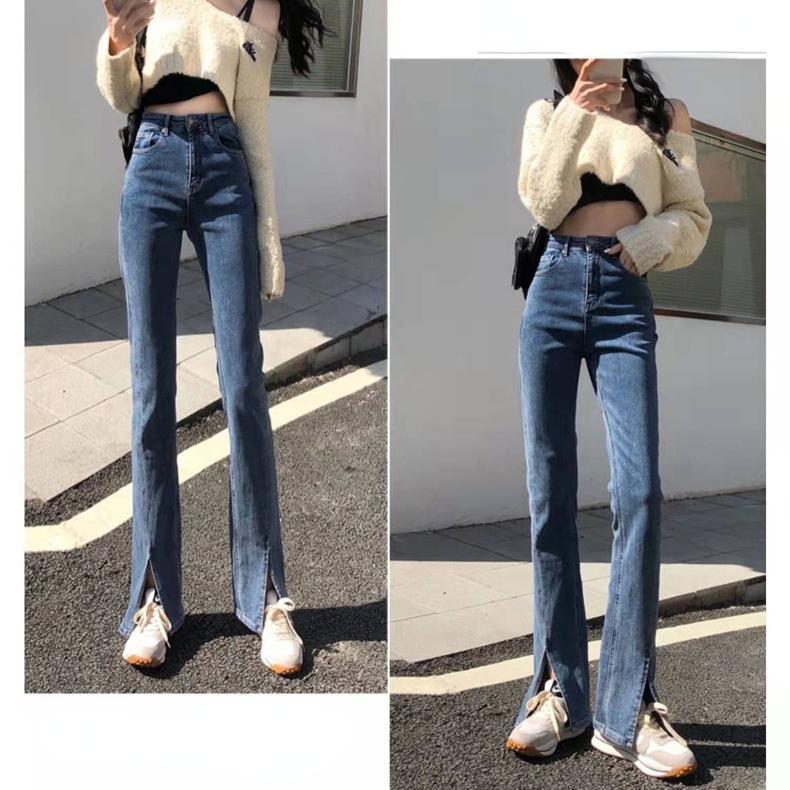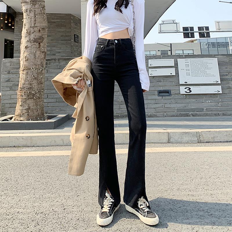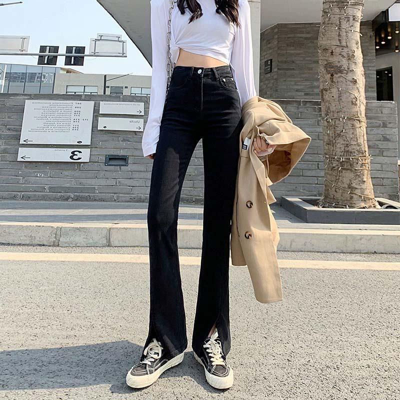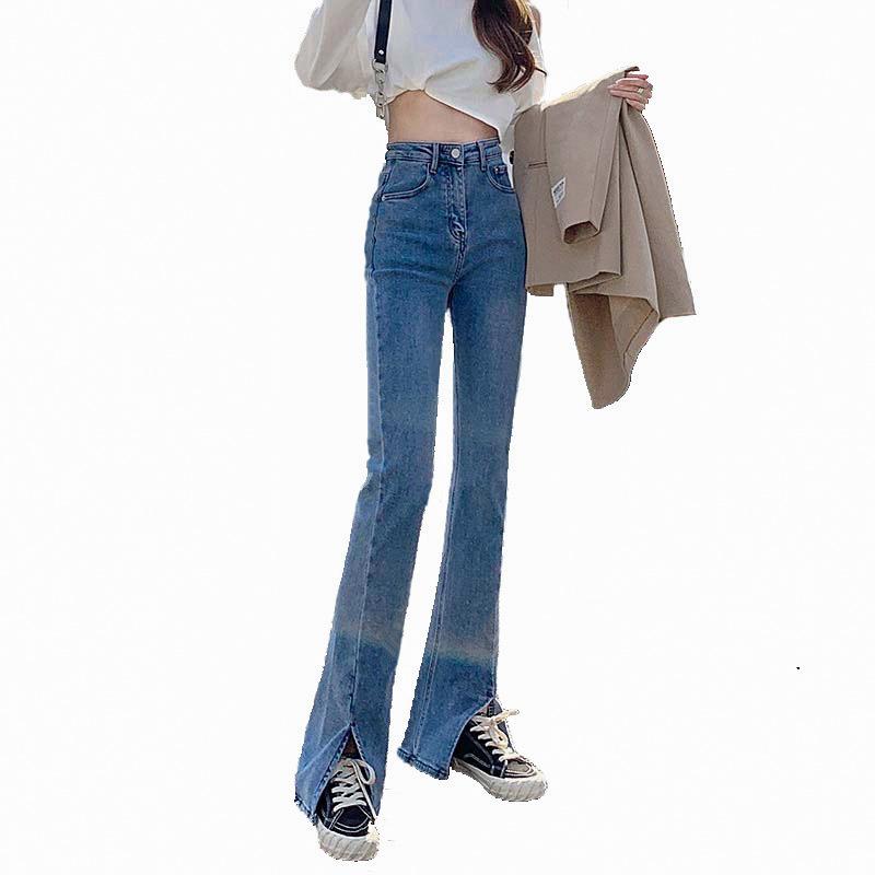Модные женские тонкие универсальные прямые женские повседневные джинсы с разрезом и разрезом, весенне-осенние джинсовые брюки с высокой талией