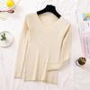 Осенне-зимний кружевной облегающий свитер с V-образным вырезом, женский вязаный универсальный пуловер с длинными рукавами, топ