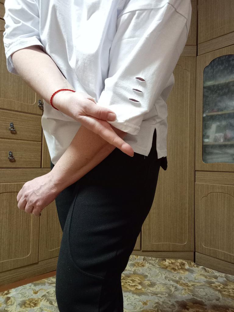 Разочарована. Повелась на отзывы. Качество, конечно хлопок 100%, но очень грубый, а вот фасон и дизайн оставляют желать лучшего. Рукав - колоколом, сама фктболка короткая и квадратная и впереди - отрезная полочка по низу. Вырез горловины очень маленький,впивается в горло. Зачем? Экономили на ткани очевидно. Вообщем куцая кофтёнка, но дорогая, носить только дома. Мой размер 48,рост 165. На плече не вышивка,как прочитала в отзыве,а дешёвая наклейка,которая при стирке посыпится. Рекомендовать не могу. Мои ожидания не оправдались. Добавляю отзыв. Дажк подарить такую футболку соаесть не позволяет.