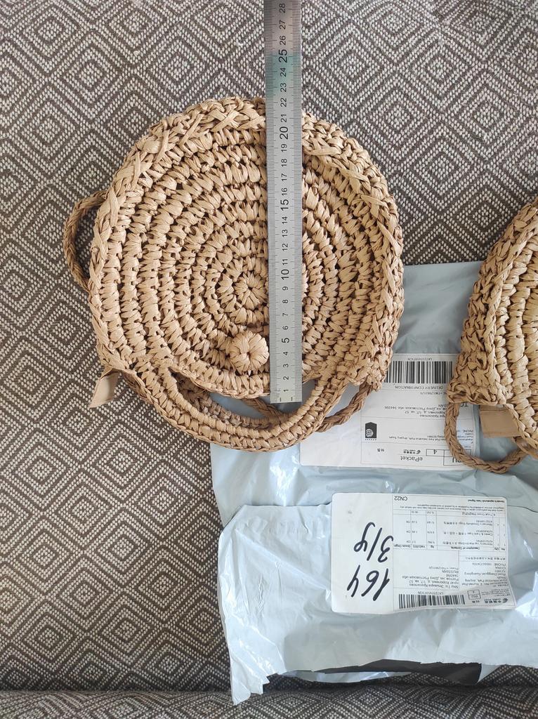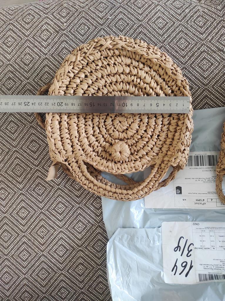 Порадовала быстрая доставка: меньше, чем три недели в Украину. Спасибо Джум. Несколько разочаровала упаковка: тонкий пакет прозрачный на самой сумке и тоже темный побольше и чуть толще внешний. Не удивительно, что с учётом того, как с посылками обращаются при транспортировке, верхний в одном месте был прорван. Сама сумка не пострадала. Но вещь довольно хрупкая и, пожалуй, требует более тщательной упаковки. Сумка соответствует описанию по размерам и цвету. Молния работает. Похоже на ручную работу из натуральной соломки. Брала на подарок. Очень надеюсь на то, что сюрприз удастся. Хотя, боюсь, если носить все время - на один сезон. В общем, я довольна. Товар рекомендую любителям оригинальных сумочек на лето!