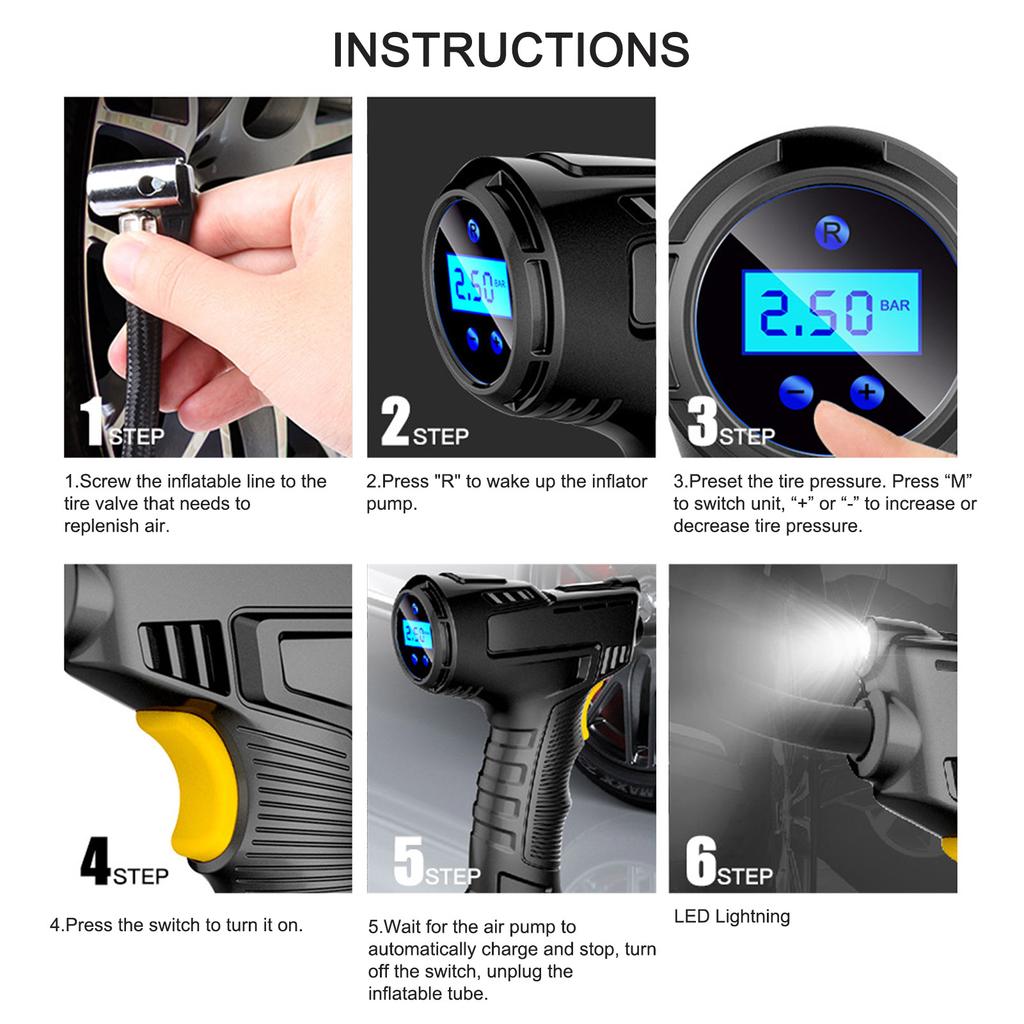Портативный ручной надувной насос, проводной автомобильный воздушный компрессор, перезаряжаемый насос для накачивания шин с цифровым управлением