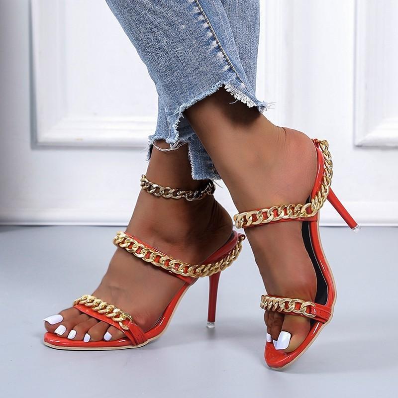 Босоножки на высоком каблуке с цепочкой, летняя обувь, женские туфли на шпильке, женские модные повседневные сандалии на шпильке, туфли для зачистки на шесте, 2022 г.