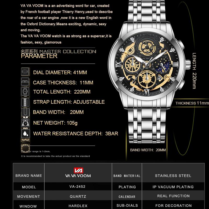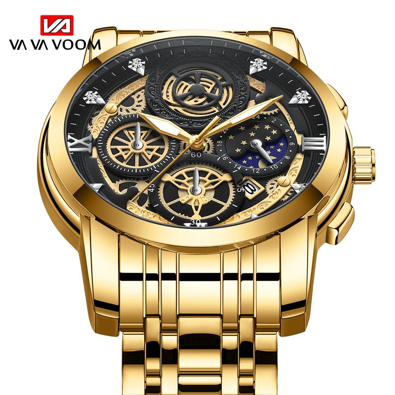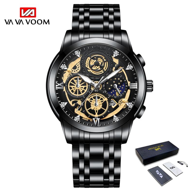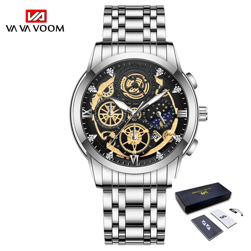 VA VA VOOM Часы со скелетом, кварцевые часы, мужские спортивные водонепроницаемые часы, повседневные деловые наручные часы со встроенной батареей, светящиеся кварцевые часы