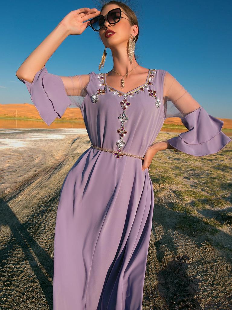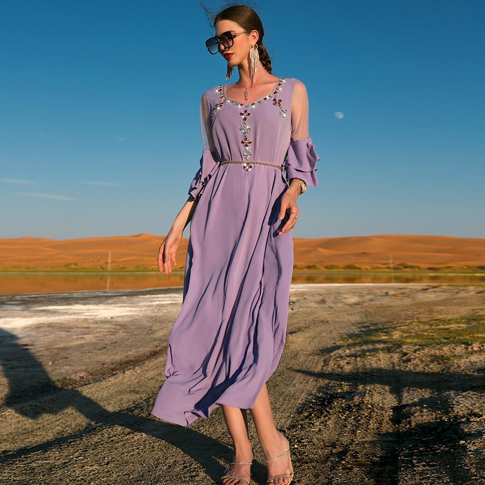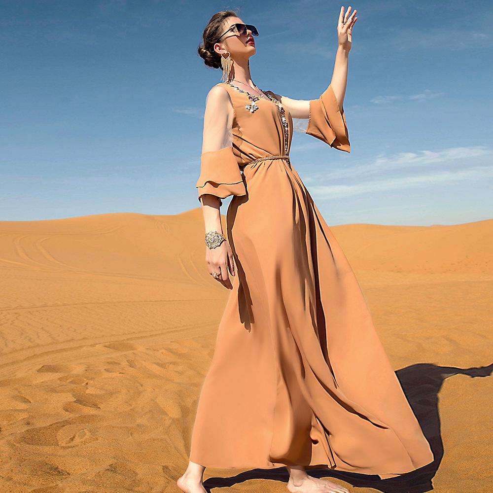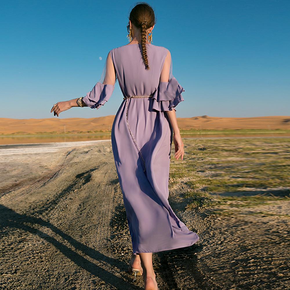 Сетчатое платье приталенного кроя цвета хаки с рюшами Мусульманское платье в Дубае