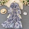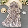 RUGOD 2024 весеннее свободное тонкое атласное однобортное плиссированное платье с круглым вырезом и длинными рукавами, элегантное легкое экстравагантное длинное платье