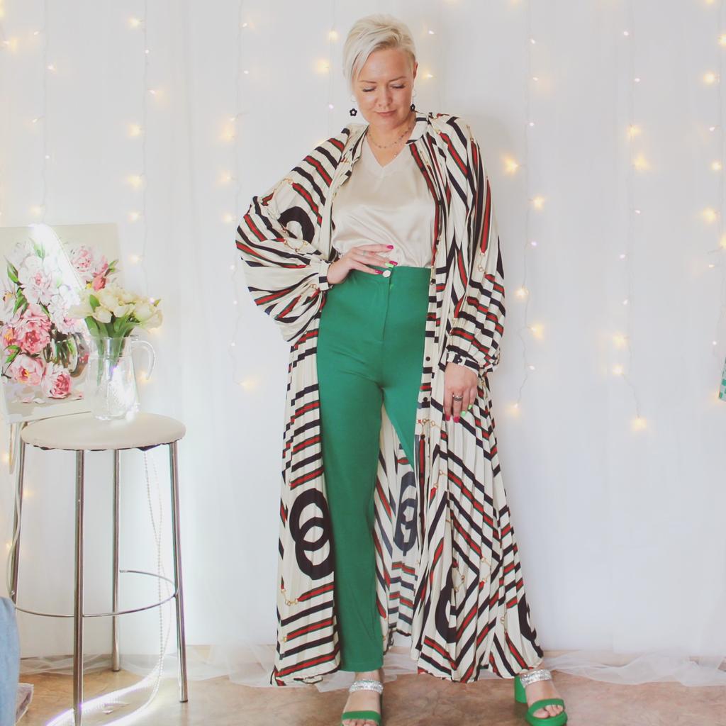 Платье плиссе в макси формате 🔥 *Все ссылки на вещи, которые используются в этом обзоре можно найти только в моем Telegram канале Miss_Kuksik Ищите пост по тегу #платье_все_плиссе И не забудь подписаться✔ Всем привет!!! Уникальное платье, которое я буду особенно рекомендовать для девушек формата плюс size. Ткань: Сшито из синтетической очень приятной на ощупь ткани. Ткань имеет лёгкий, благородный 3D блеск. Ткань не просвечивает, не тянется и не липнет к телу. Дизайн: Платье-халат полностью застёгивается на пуговицы спереди. В комплект добавлен тонкий поясок. Ткань плиссе. Линия плеч здесь отсутствует. Рукава объёмные,длинные. Само платье расширяется от линии груди к низу трапециевидно. ‼️Все остальные детали можно посмотреть в моём видео 🎞 Сезон: Весна, лето. Цвет: Бежевый + геометрические узоры Размер: На мне единый размер. Мои параметры: рост 172 см 96/75/105 см Детальные замеры изделия: Длина 134 см Плечи - нет Длина рукава 60 см (примерно) ОГ 140 см ОТ 160 см ОБ 204 см Резюмирую: Как и писала выше это платье подойдёт для девчонок размера плюс size,а так же для высоких девушек,и для тех у кого большая грудь. Я очень рекомендую.Берём. И не прощаюсь, Miss_Kuksik❤️