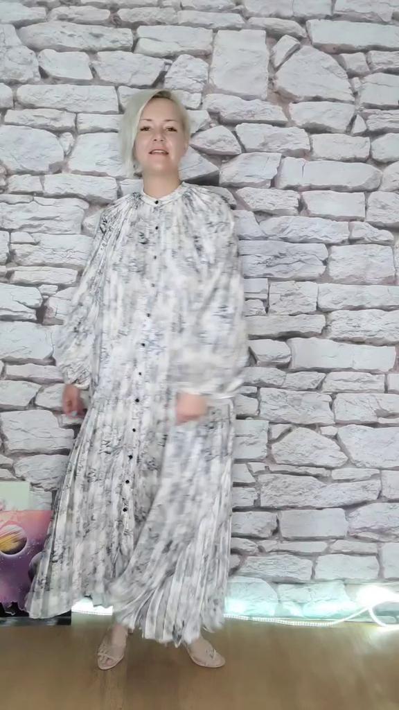Греческая богиня! + видео Привет! Это платье в самое сердце❤️ Красивое изысканное, женственное и очень статусное! Я в диком восторге и от расцветки и от его дизайна! Ткань: Мягкая, тонкая ткань с нежным атласным блеском. Не тянется, не светит, чуть копит статику, но не критично. Можно гладить утюгом, но я просто отпаривала. Дизайн: По сути это платье халат , полностью застёгивается на пуговки. Пуговки совершенно обычные, нарядные тут не к чему. По крою платье не имеет линии плеч, на рукавах резинка, что делает рукав пышным и округлым. Платье все плиссированное только воротничок таким не является. В комплекте должен быть поясок, но мне он не пришёл почему-то, но не критично, заменяю своим. Качество: Пошито платье очень хорошо и аккуратно. Минусы: Для себя не обнаружила, кроме отсутствия пояса. Сезон: Весна - лето Размер: На мне единый размер. Мои параметры рост 172 см 97/77/108 см Детальные замеры изделия: Длина 132 см ОГ 134 см ОТ 164 см ОБ 206 см Длина рукава от горловины 72 см Резюмирую: Платье однозначно подойдёт на высокий рос и на пышные параметры в том числе! Девчат мне вас жаль, так как я не знаю, как вам выбрать тот самый цвет, так как это очень сложно все расцветки красивые. Рекомендую! Берем! Я не прощаюсь, Мой Telegram канал Miss_Kuksik