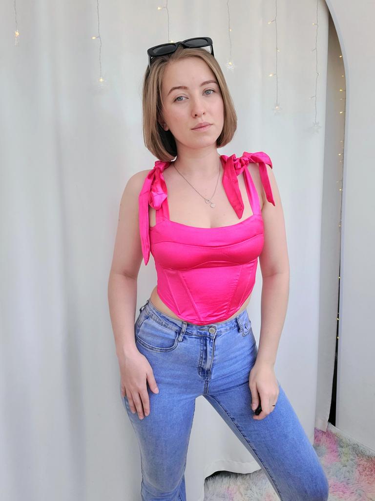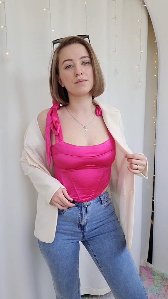 🌸Топ-корсет на завязках в ярко-розовом цвете 🌸Боялась что этот цвет будет меня раздражать ,но я в него влюбилась сразу как только распаковала посылку 😍🥰🥰🥰🤩 🌸Этот цвет мягкая фуксия я бы так выразилась 🌸На меня сел не в притык (дамы посочнее однозначно влезут ) 🌸🍭Мои параметры 🍭Рост 164см 🍭Вес 47кг 🍭Ог 85 🍭От 60 🍭Об 89 Корсет сам по себе из плотной ткани ,мне нравится как сидит на груди ,(не сдавливает ) лямки широкие (это позволяет носит,белье ,если вдруг кому не комфортно ) Я гуляла в нем весь день,было хорошо 👌🏻 Ткань очень приятная ,похожа на плотный шёлк (но конечно же это синтетическое волокно) Есть вставки по периметру как и полагается в корсете Корсеты сейчас в тренде это актуалочка держится в топе по сей день Женственно и модно ❤️ Рекомендую ,у продавца есть ещё в желтом цвете ❤️ Спасибо большое магазину ❤️❤️❤️❤️ И Джуму за весьма скорую доставку ❤️❤️❤️❤️ ❤️❤️❤️❤️✨✨Спасибо всем за лайки и комментарии и подписку ❤️❤️❤️❤️ 🎁Удачных всем покупок и отличного настроения