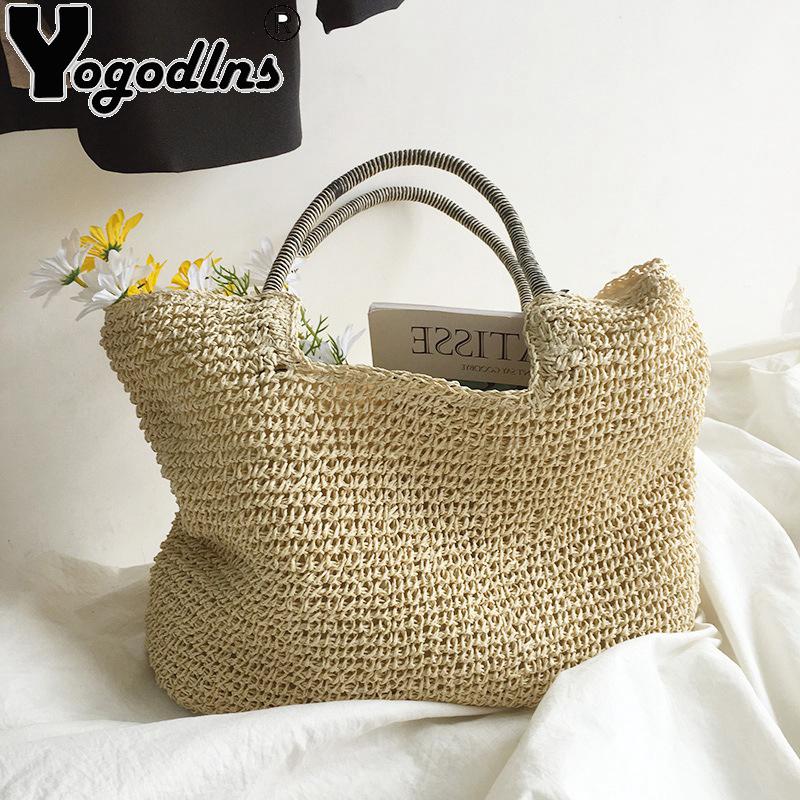 Yogodlns Новые летние соломенные пляжные сумки для женщин, тканые сумки на плечо ручной работы, праздничные морские сумки, повседневная соломенная сумка-тоут из ротанга