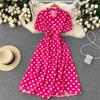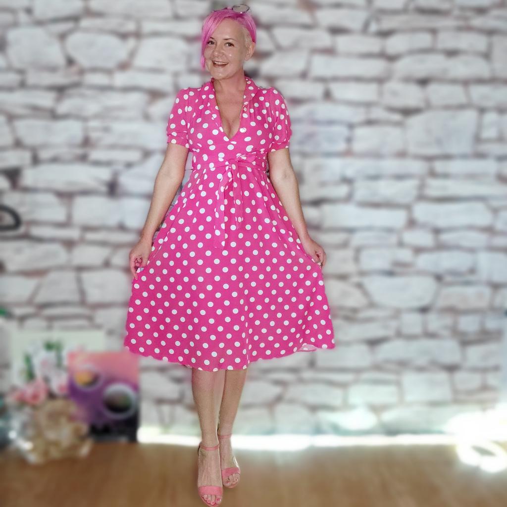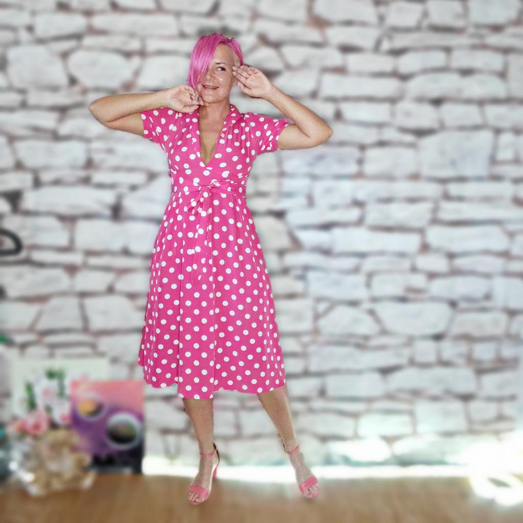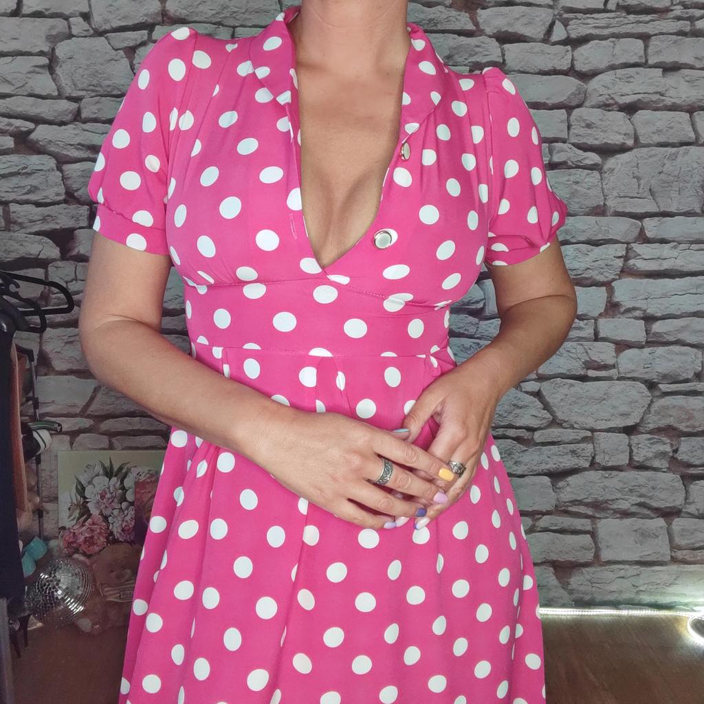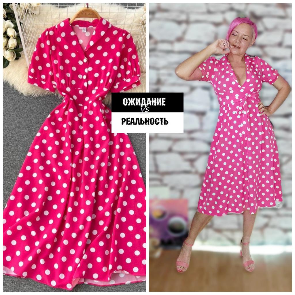 Розовые грезы! + видео Привет! Ах какое платье и как жать , что мне оно мало 😑 но выглядит на мне очень красиво, по мнению моего мужа 😄 Ткань: Полиэстер, но приятный, ткань мягкая, тянется но очень слабо. Хорошо гладится, почти не мнётся, не светит. Дизайн: Выполнено платье в стиле Pin Up, милое и женственное . Спереди ряд пуговок, короткий воротник, рукава фонарики. Сбоку пришиты две широкие ленты пояса, застегивается платье на молнию она расположена сбоку. Минусы: Максимум подойдет на 46 размер. Качество: Пошив отменный, все ровно и аккуратно. Сезон: Лето Цвет: Фуксия и белый горох Размер: На мне единый размер Мои параметры рост 172 см 97/77/108 см Детальные замеры изделия: Длина 107 см Плечи 32 см ОГ 88 см ОТ 72 см Длина рукава 24 см Резюмирую: Классное платье! Романтичное, стильное, легкое, яркое! Однозначно рекомендую! Берем! Я не прощаюсь, Мой Telegram канал Miss_Kuksik