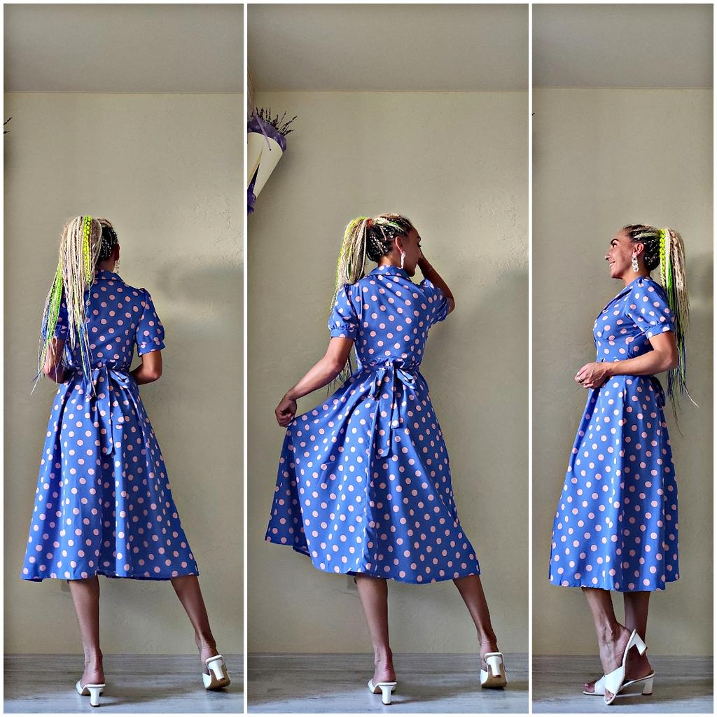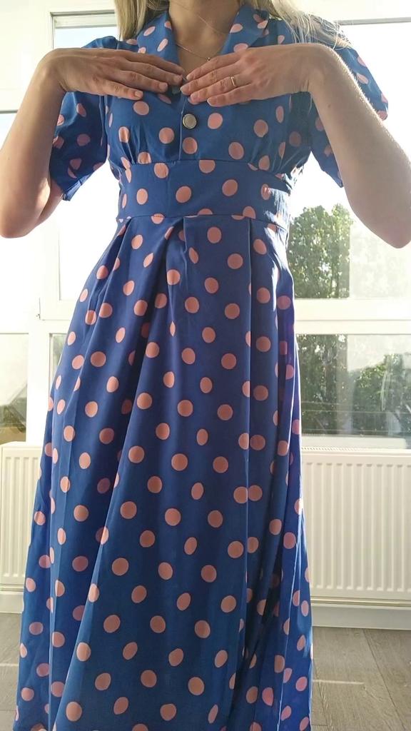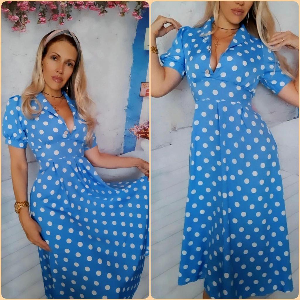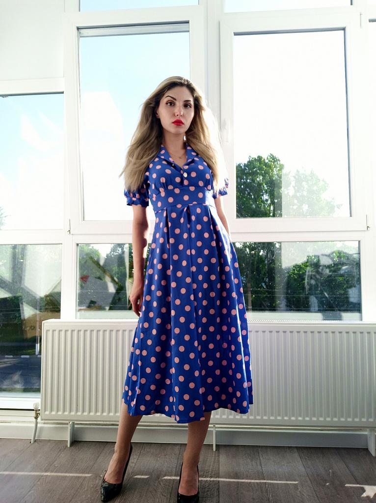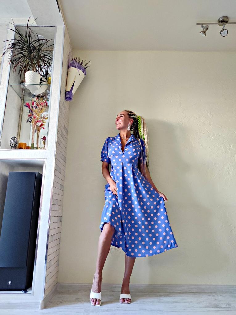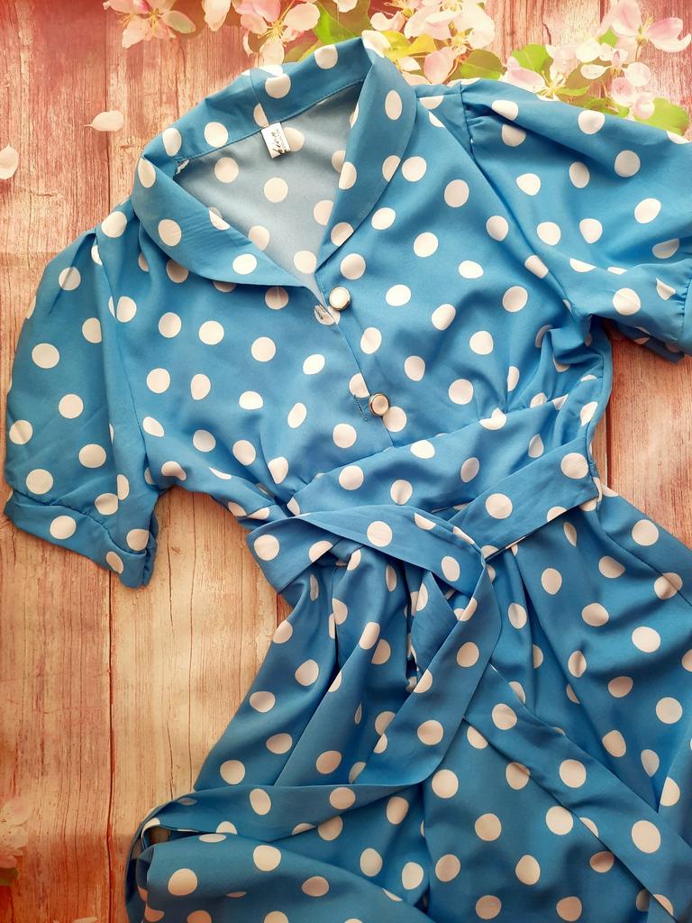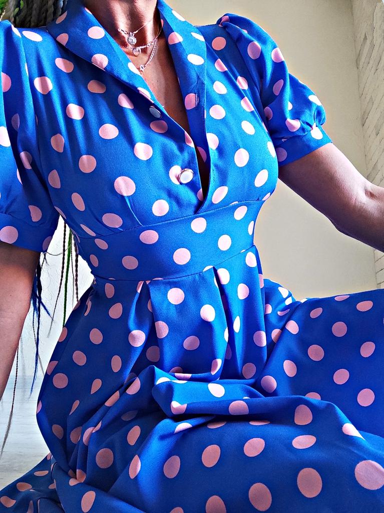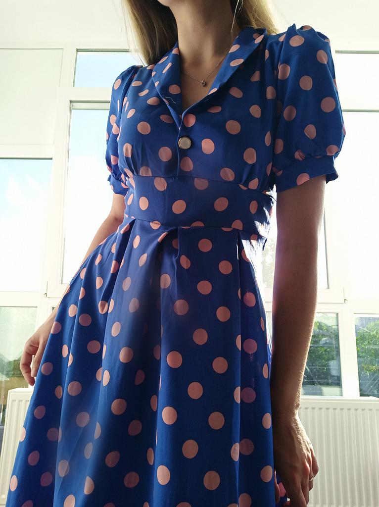 Синее платье в розовый горох 💙💕 Всем солнечный приветик 👋😉 Девочки, эта расцветка не оставила меня равнодушной 😋 Фасон платья романтичный 💐🥰 Платье идёт в едином размере. Подойдёт край на 44 размер. Если пуговицы застегнуть, то подойдёт максимум на объём груди 87см. В расстёгнутом состоянии на 94см. И рост не выше 160см, т.к. платье отрезное и шов сядет не там где нужно. На мне платье село отлично, только в объёме груди туго, но я растегнула пуговицы на груди и более менее стало 😅 Мои параметры: 🎗рост 160см 🎗вес 54кг 🎗длина плеч 40см 🎗объём груди 94см (75D) 🎗объём талии 63см 🎗объём бёдер 92см. Качество: 💙 ткань полиэстер, приятный к телу 💕 не липнет к телу 💙 не просвечивает 💕 не тянется 💙 воротник можно носить и стойкой 💕 на груди платье застёгивается на 2 пуговицы 💙 платье отрезное 💕 по бокам выше талии есть две ленты, которые можно завязать как сзади, так и спереди 💙 короткие рукава-фанарики💕 стиль платья похож на ретро 💙 швы ровные. Точные замеры платья: 📏 ОГ - 88см 📏 ОТ - 70см 📏 ОБ - 132см 📏 длина платья от плеча до отрезной части - 29см 📏 длина платья - 116см 📏 длина плеч - 34см 📏 длина рукава - 25см 📏 объём рукава у плеча - 44см 📏 объём манжеты - 28см. Я платьем довольна и буду его рекомендовать всеми ручками 💞🤗💞 Спасибо, продавцу и Джуму 😘😘😘 Чмок-чмок-чмок, всех кто со мной на Джуме 52 тысячи раз 😘😘😘😘😘 Желаю удачных покупок 🛍😊 терпения 🤗 и весны в душе 🌈☀️🌱🦋🌼💕🐞🌳🕊 До скорого 🙌😊 Песня во втором видео: Ольга Серябкина "Синий Цвет Твоей Любви" 🎶💃🎶
