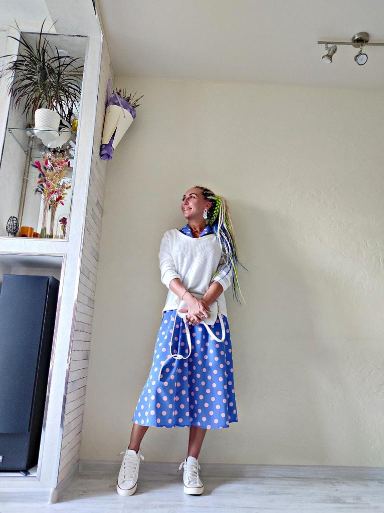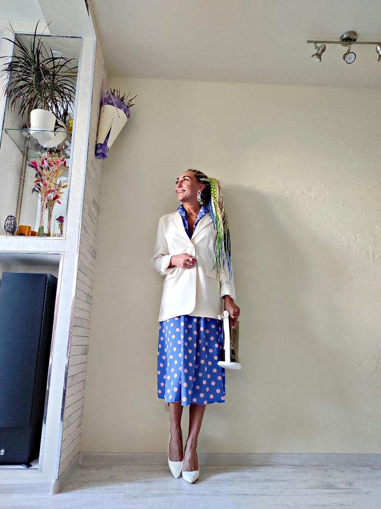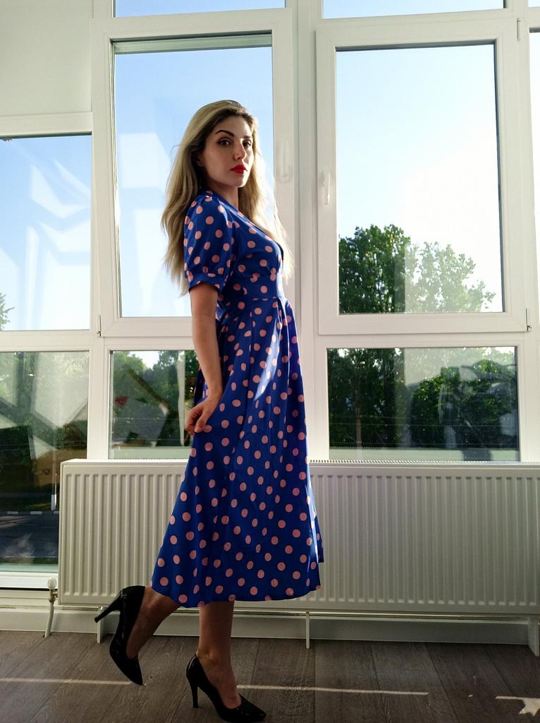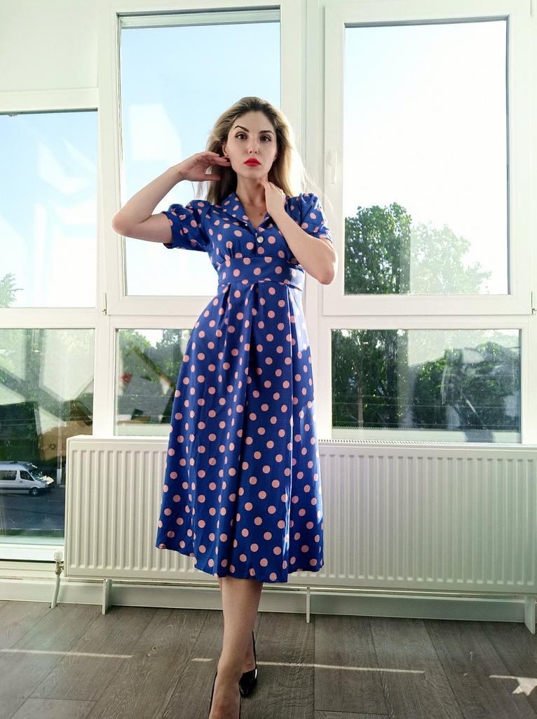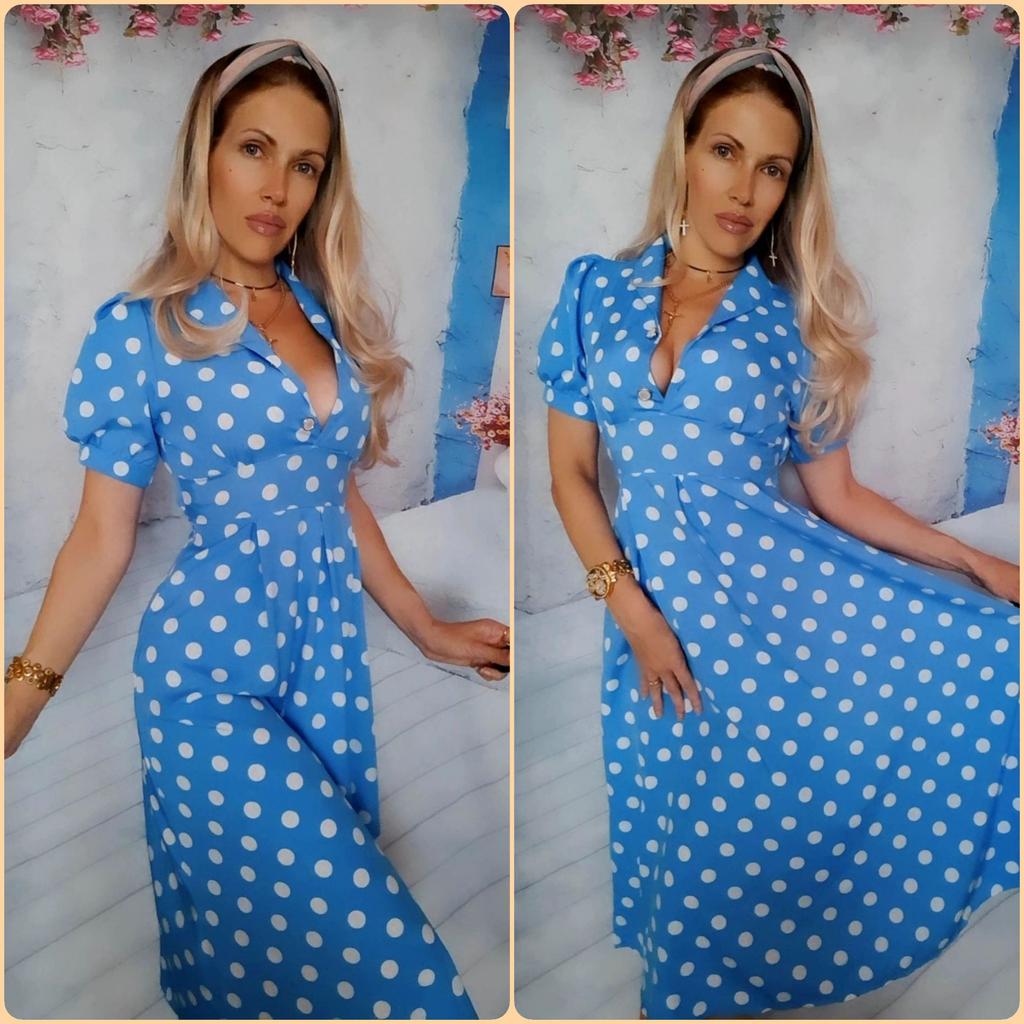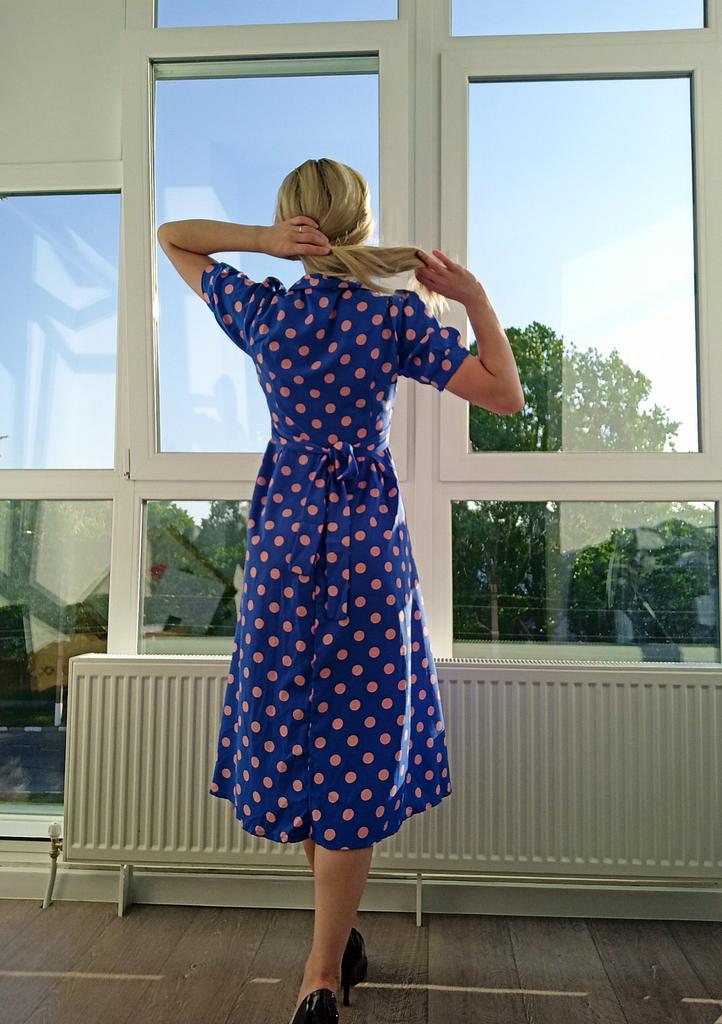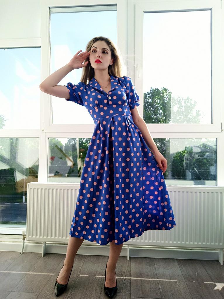 Синее платье в розовый горох 💙💕 Всем солнечный приветик 👋😉 Девочки, эта расцветка не оставила меня равнодушной 😋 Фасон платья романтичный 💐🥰 Платье идёт в едином размере. Подойдёт край на 44 размер. Если пуговицы застегнуть, то подойдёт максимум на объём груди 87см. В расстёгнутом состоянии на 94см. И рост не выше 160см, т.к. платье отрезное и шов сядет не там где нужно. На мне платье село отлично, только в объёме груди туго, но я растегнула пуговицы на груди и более менее стало 😅 Мои параметры: 🎗рост 160см 🎗вес 54кг 🎗длина плеч 40см 🎗объём груди 94см (75D) 🎗объём талии 63см 🎗объём бёдер 92см. Качество: 💙 ткань полиэстер, приятный к телу 💕 не липнет к телу 💙 не просвечивает 💕 не тянется 💙 воротник можно носить и стойкой 💕 на груди платье застёгивается на 2 пуговицы 💙 платье отрезное 💕 по бокам выше талии есть две ленты, которые можно завязать как сзади, так и спереди 💙 короткие рукава-фанарики💕 стиль платья похож на ретро 💙 швы ровные. Точные замеры платья: 📏 ОГ - 88см 📏 ОТ - 70см 📏 ОБ - 132см 📏 длина платья от плеча до отрезной части - 29см 📏 длина платья - 116см 📏 длина плеч - 34см 📏 длина рукава - 25см 📏 объём рукава у плеча - 44см 📏 объём манжеты - 28см. Я платьем довольна и буду его рекомендовать всеми ручками 💞🤗💞 Спасибо, продавцу и Джуму 😘😘😘 Чмок-чмок-чмок, всех кто со мной на Джуме 52 тысячи раз 😘😘😘😘😘 Желаю удачных покупок 🛍😊 терпения 🤗 и весны в душе 🌈☀️🌱🦋🌼💕🐞🌳🕊 До скорого 🙌😊 Песня во втором видео: Ольга Серябкина "Синий Цвет Твоей Любви" 🎶💃🎶