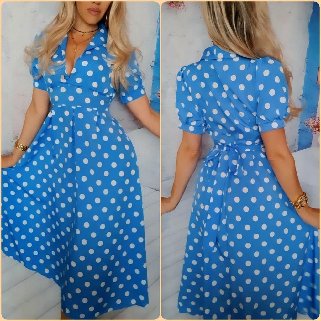 Мой Telegram-канал💙 - alyona_lacoste1983 Подписывайся, рада каждому💕 ЛЕТНЕЕ ПЛАТЬЕ от RUGOD❤❤❤ Симпатичное, милая расцветка в крупный горох🥰 Выбрала приятный голубой цвет💙 🎗На мне единый размер, село платье прекрасно, по груди как раз, линия талии на месте) По длине оно мне до середины икры. Мои параметры 94-58-95, рост 167 см Эта вещь подойдёт на 42-46 размер, всё зависит от обхвата груди, он должен быть желательно не больше моего😉 ✔Качество как всегда порадовало, пошив и отделка аккуратные, всё чудесно! Выполнено из плотноватого синтетического материала, он не тянется, не просвечивается, легко погладился, не электризуется, к телу нормальный. Моделька приталеная с V-образным отложным воротником, который застёгивается на две пуговицы. Сбоку имеется потайная молния. Талию подчёркивает пришитый с двух сторон пояс из такой же ткани, завязывается сзади. Рукава короткие, объёмные и пышные) Промофото магазина соответствует, на выбор имеется 12 красивых расцветок, размер ONE SIZE 🛬Доставка в Беларусь, Витебск🇧🇾 41 день с полным отслеживанием👌 💕Нежное, милое, женственное платье, брать можно смело💯 От меня⭐️⭐️⭐️⭐️⭐️ 🤗Всем только приятных 🛍🛍🛍😉