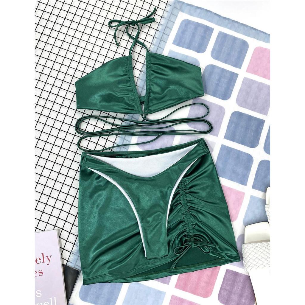 Сексуальный бикини с запахом на шее, женский купальник, женский купальник, комплект из трех частей, комплект бикини с юбкой, купальный костюм, купальный костюм