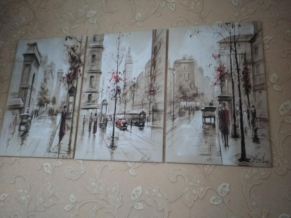 Картины очень понравились . Вставила в рамы, не стала устанавливать стёкла. Выглядят очень стильно. Отправила фото сестре- полный восторг! Правда, надо было 30 на 40 заказать, а я 40 на 50. Хочу повесить в прихожую, когда поменяю обои. Они уже есть, таких же сочетаний цветов, с рисунком в лёгкую сеточку. Очень благодарна!