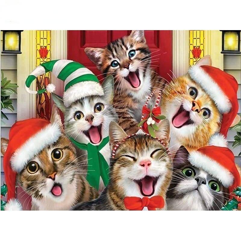 5d Алмазная картина Рождественский кот Полный Круглый Ручная работа Алмазная вышивка Мозаика Животное Домашний Декор Настенное Искусство