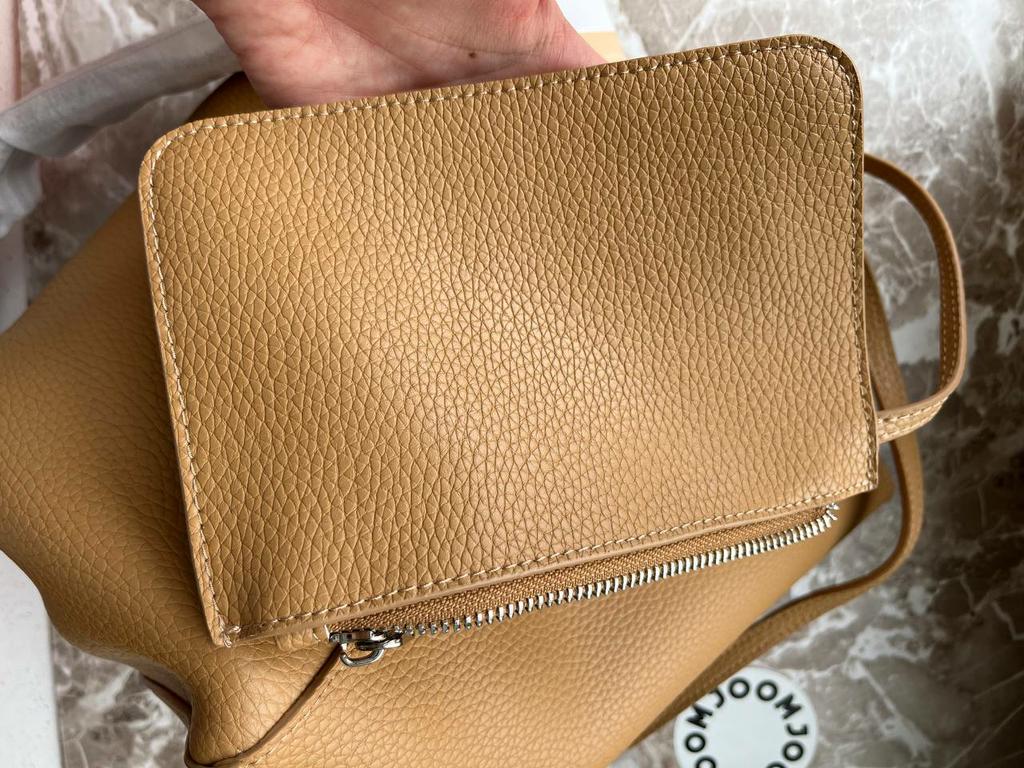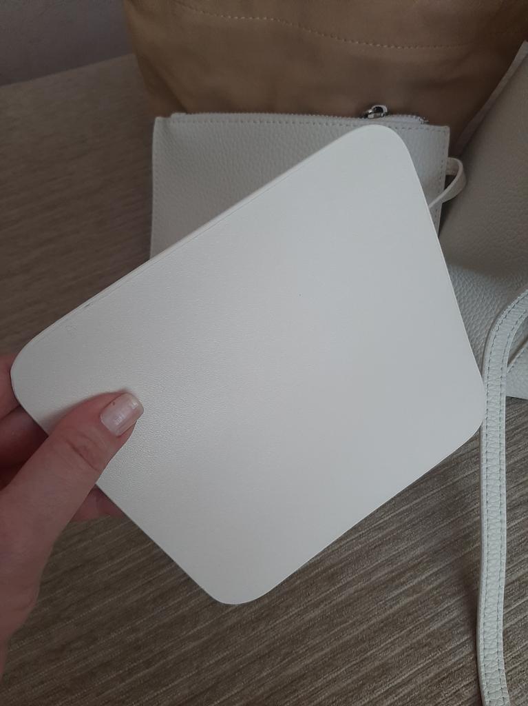 Обалденная сумка из магазина VENOF 👍🤍 сумка из натуральной кожи, цвет не белый и не молочный, а больше экрю, для лета идеальный вариант, она без подкладки, но внутри мешочек из натуральной замши песочного цвета, внутри него плотная хб подкладка, два кармана, один на молнии. Ещё внутрь к застёжке сумки крепится на карабине кошелёк, очень удобно, он как раз подходит для налички и карточек. Пробовала засунуть в него телефон, но он не прошёл через молнию. Ещё сумка укрепляется жёстким вкладышем на дно. Очень интересные ручки, одна из них регулируется по длине. Все швы ровные, кожа плотная, запакована была в коробку, внутри пузыри с воздухом, при распаковке был запах, но за ночь на балконе выветрился. Ношу её уже больше недели и очень довольна 😍