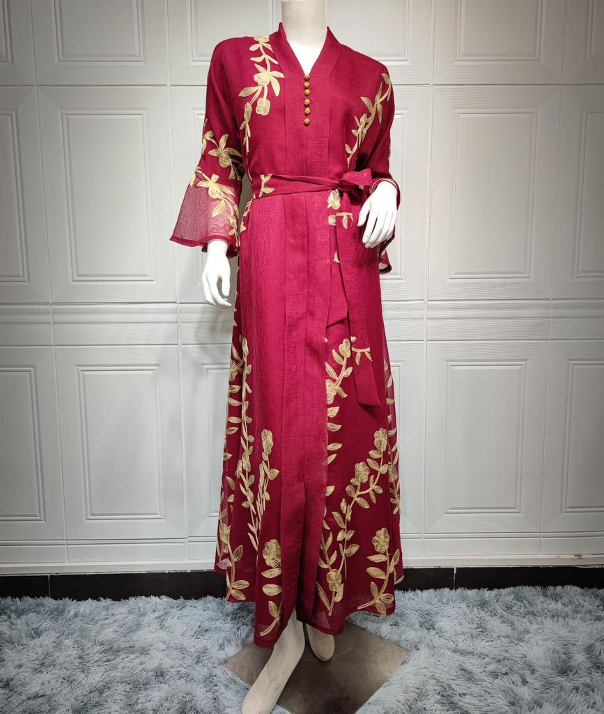 Мусульманский сетчатый вышитый халат с V-образным вырезом, облегающее свободное арабское платье