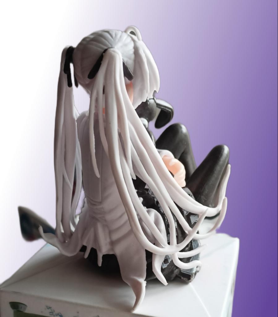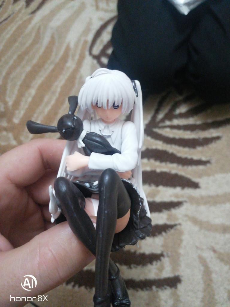 Кукла изящная, детальная, небольшая (умещается в ладони), но для такого размера увесистая, ветром не сдуешь)) Волосы слегка подвижные, будто резиновые, юбка внизу (часть, на которой сидит) не покрашена, но там и не видно. Кролик несуразный совершенно, видимо его так смяли, чтобы удобно помещался к статуэтке в руки. В целом умилительная вещь, сидит теперь вся такая меланхоличная на моем окне и думает о нем (не знаю о ком). Пасиба