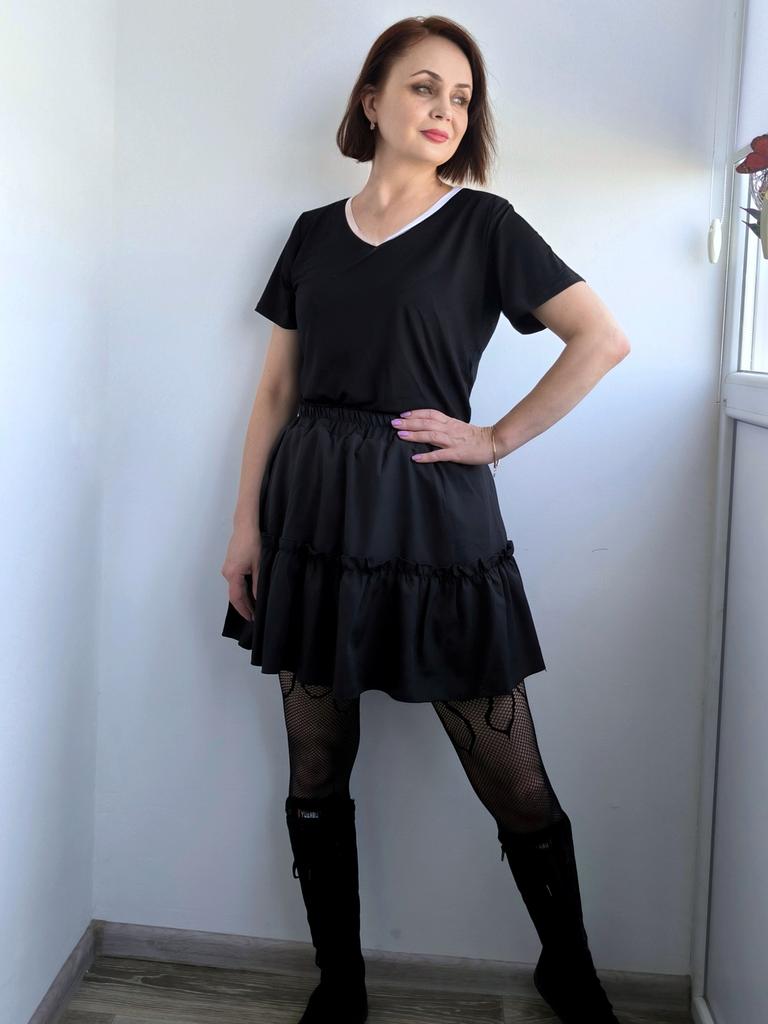 Мини-юбка ❤️ На первый взгляд, это классическая черная юбка, идеально подходящая для создания летних и повседневных образов. Однако, главная особенность и преимущество этой модели заключается в том, что внутри встроены шорты. Юбка выполнена в универсальном черном цвете, который легко сочетается с любыми другими элементами гардероба. Она имеет А-силуэт и многоярусные оборки по низу, что придает ей игривый, воздушный и женственный вид. Такая модель выглядит очень актуально и трендово. Встроенные шорты - ключевая деталь, которая обеспечивает максимальный комфорт и уверенность. Скрытые шорты позволяют свободно двигаться, наклоняться и чувствовать себя защищенно, не беспокоясь о том, что юбка может задраться, особенно в ветреную погоду или при активном отдыхе. Пояс на резинке обеспечивает удобную и надежную посадку на талии, подстраиваясь под особенности фигуры и не сковывая движений. Ткань юбки легкая и струящаяся. Замеры юбки в размере L: ОТ - 56 см, ОТ в растянутом виде - 92 см, Длина - 42 см, ОБ шортиков - 100 см С удовольствием рекомендую 👍 Удачных покупок ❤️ Ваша Вика 😊