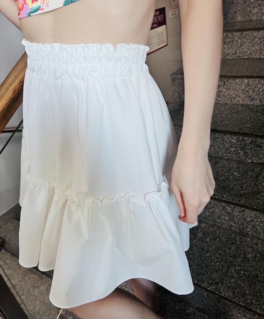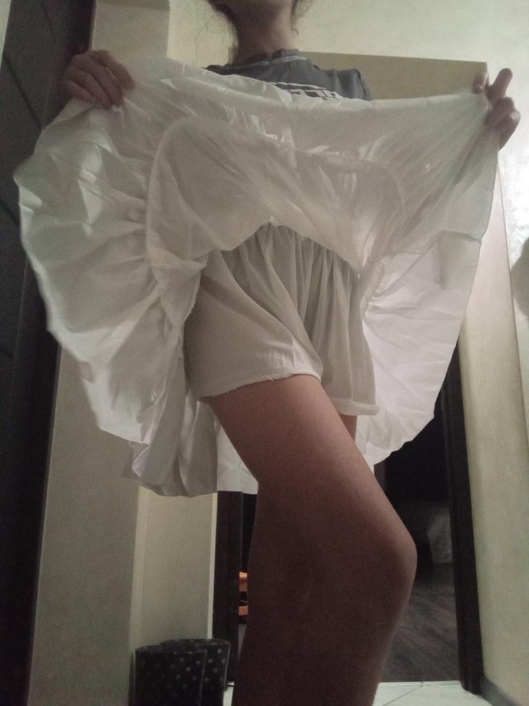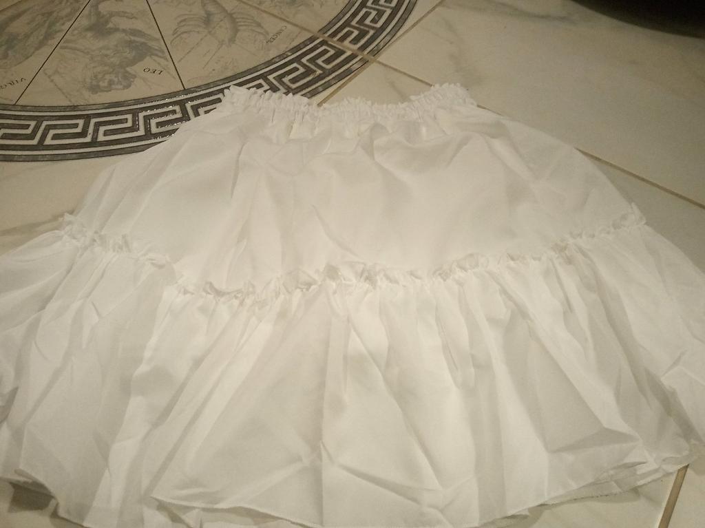 Было много ниточек. Потратила время, чтобы пройти по всем швам и закрепить их. Были прострочены строчки и ни одна не была обработана в конце. Также верхний шов изнутри не обработан. Ткань не обработана и из нее лезут нитки. Надо обрабатывать край, чтобы не лоснились нитки. На талии плохо прострочена, в одном месте нитки распустились. Надо искать нитку под тон, так как юбка не чисто белая, а скорее цвет айвори. А так, очень милая, выглядит прелестно. Но надо дорабатывать.