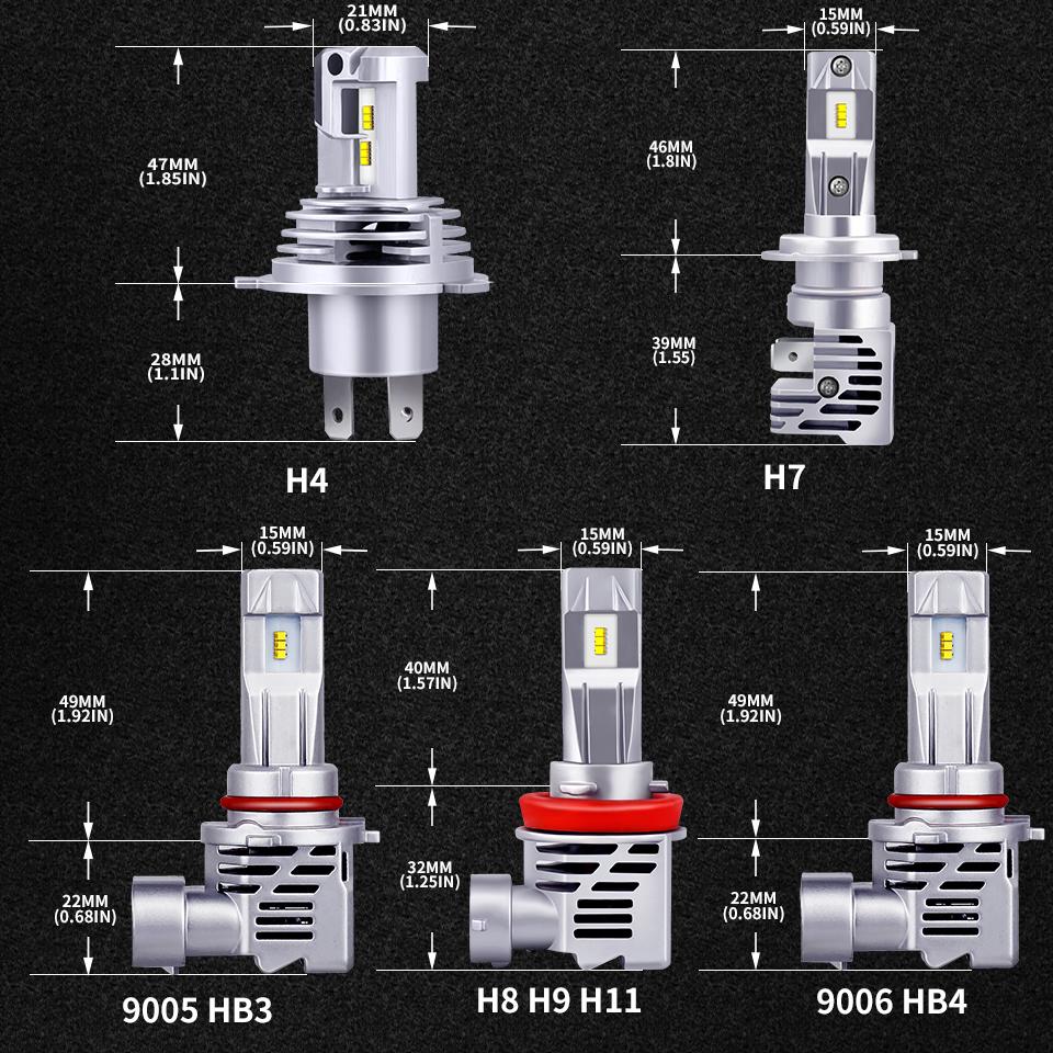 Большой размерный ряд: H8/H11, HB3/9005, HB4/9006, H4, H7