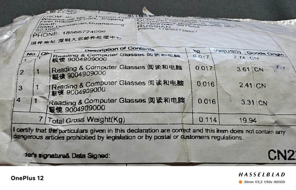 Заказываю уже не первый раз, товар отличный, качественный, не хрупкий, с плёнкой поляризации, лёгкие. Всё бы хорошо, но... Пришло в посылке меньшее количество, чем я заказывал. Заказывал 7 пар, пришли только четыре. И главное, обратите внимание на фотографию упаковки- написано количество штук очков в табличке - четыре, а общее количество в нижней строке слева -7. То же самое и с весом посылки: если сложить вес, указанный в табличке на упаковке, он будет меньше, чем общий вес посылки в графе внизу. Всё очень по моему мнению очевидно, просто 3 штуки товара тупо не доложили. И ещё самое интересное, как посылка прошла таможню с весом, ниже веса, указанного на упаковке. Почта России наверное просто не взвешивали посылку. Кстати, что б никто ничего не подумал, упаковка целая, её никто не вскрывал. Да и размер пакетика такой, что как раз только туда и поместится 4 пары очков, не более. Сразу скажу, что написал в службу поддержки Джума, вернули деньги практически сразу на карту, но только почему-то ТОЛЬКО ЗА ОДНУ ПАРУ ОЧКОВ!!! В общем, не знаю, кто виноват, но кажется всё таки отправитель не доглядел... 🤷 Дополняю: все деньги за неполученный заказ возвращён при помощи службы поддержки Джума. Спасибо за помощь 🤝