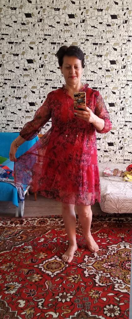 Ткань очень тоненькая и тянется как резиновая,лёгкая даже прозрачная,но сшит с чехлом поэтому ничего не просвечивается Платье подошло по размеру к моему удивлению,ну чисто летний вариант Спасибо продавцу за подарок феничку